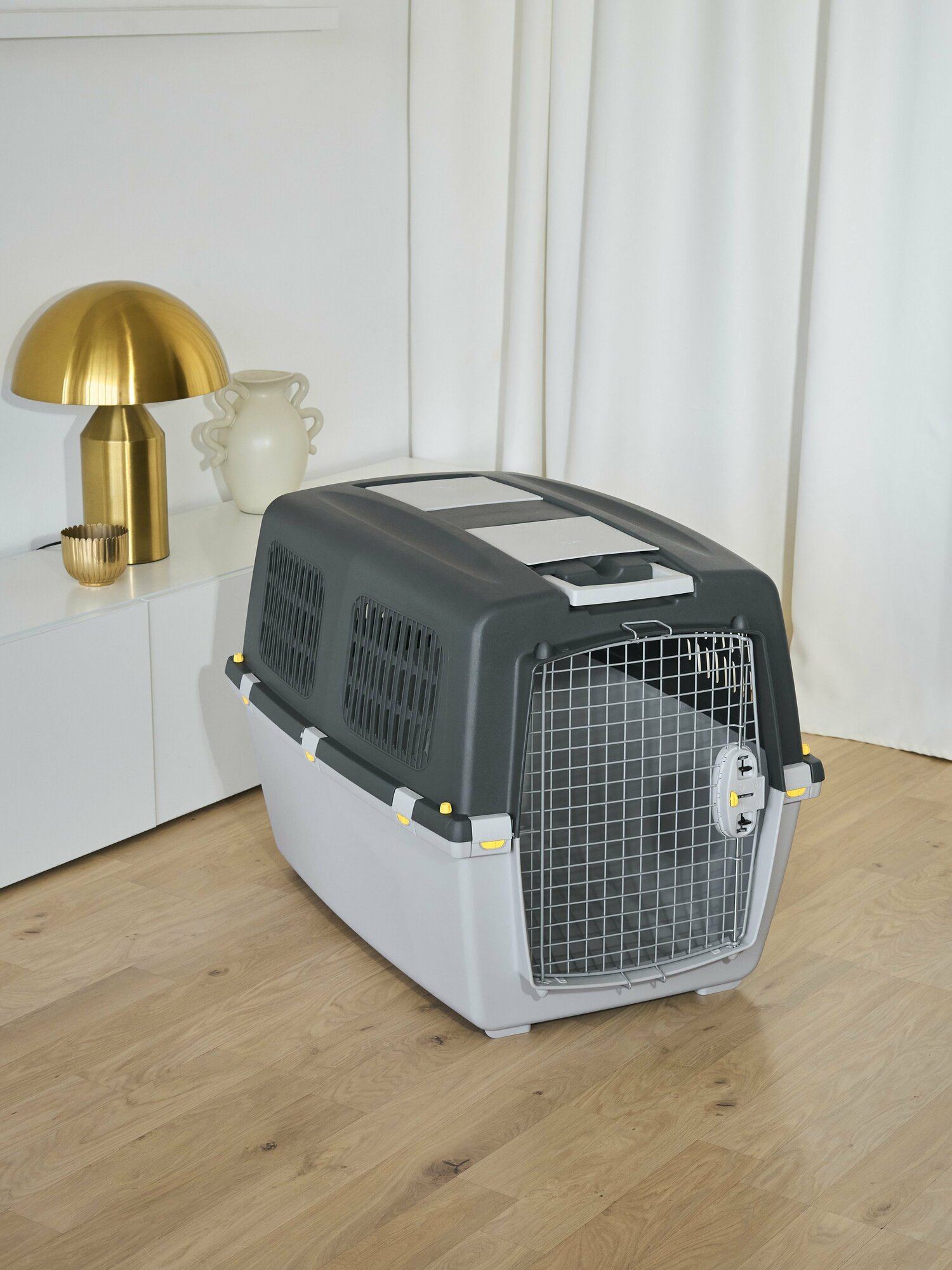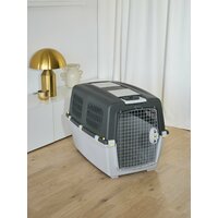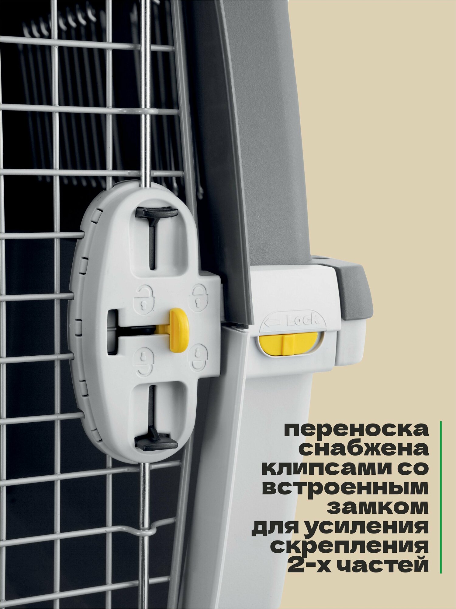 Красивая и лёгкая пластиковая переноска для животных с ручкой и металлической дверкой размером — (102 x 72 x 76 см) европейского бренда из Италии. Изготовлена из качественных комплектующих с учетом всех требований и маркировок для авиа и ЖД перевозок. В комплекте с переноской есть: поилка, стяжки и наклейки для перевозки животных. Переноска подходит для транспортировки кошек и собак мелких и крупных пород. Применима для многочасовых перевозок, как в салоне вашего автомобиля, так и в багажном отделении. Крепкая конструкция с вентиляционными отверстиями легко моется и не впитывает неприятные запахи. Сверху расположено отверстие с крышкой для кормления, в которое поместится рука, игрушки и корм. Надежные замки-защелки на двери обеспечат безопасность питомца в непредвиденных ситуациях, не сбежит даже самый активный питомец. Также конструкция оснащена прорезями для автомобильного ремня, чтобы она не перемещалась по салону. Дверца открывается в обе стороны, а также снимается. Конструкция выполнена из качественного толстого пластика и усиленная надежными крепежами, данная модель размером 102 x 72 x 76 см выдерживает до 50 кг. Легко собрать и разобрать. Внутренние размеры переноски 94 x 65 x 65 см.