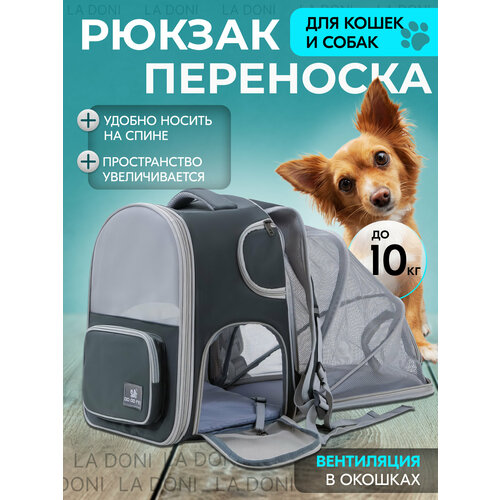 Рюкзак - переноска для кошек и собак станет незаменимой вещью для владельцев домашних животных весом до 10кг. Будет удобен для путешествий на машите (авто), поезде, самолете (авиа) (уточняйте требования у своего перевозчика), передвижении на общественном транспорте или просто на прогулке. Очень функционален и легко трасформируется в просторный домик - палатку, ведь благодаря возможности расширения вы получите размер изделия 32х(23,5+37)х39см. Вы можете носить рюкзак за спиной или спереди. Благодаря небольшим кармашкам вы можете просунуть руки прямо во время перемещения и погладить своего питомца, так ему будет спокойнее в незнакомой обстановке. Переноска выполнена из прочного водоотталкивающего материала, который поможет защитить вашего любимца от непогоды: дождь, снег, ветер и холод ему не страшны. При этом наличие оптимального количества окошек из сетки обеспечивает необходимую циркуляцию воздуха внутри. Наша сумка переноска подойдет для всех сезонов. Вашему котику или собачке будет невероятно комфортно внутри: дно рюкзака плотное и не провиснет под весом даже упитанного питомца, при этом матрасик мягкий и уютный. Для безопасности животных предусмотрен карабин, к которому можно пристегнуть шлейку или ошейник. Эта стильная сумочка для переноски имеет светоотражающие вставки. Благодаря карману необходимые вещи всегда будут под рукой. Переноска трансформер компактно складывается и займет совсем немного места для хранения. Возьмите в дорогу своего котенка щенка кота собаку кролика хорька морскую свинку, комфортно будет и йорку таксе чихуахуа шпицу. Пусть путешествия приносят радость Вам и вашему питомцу!
