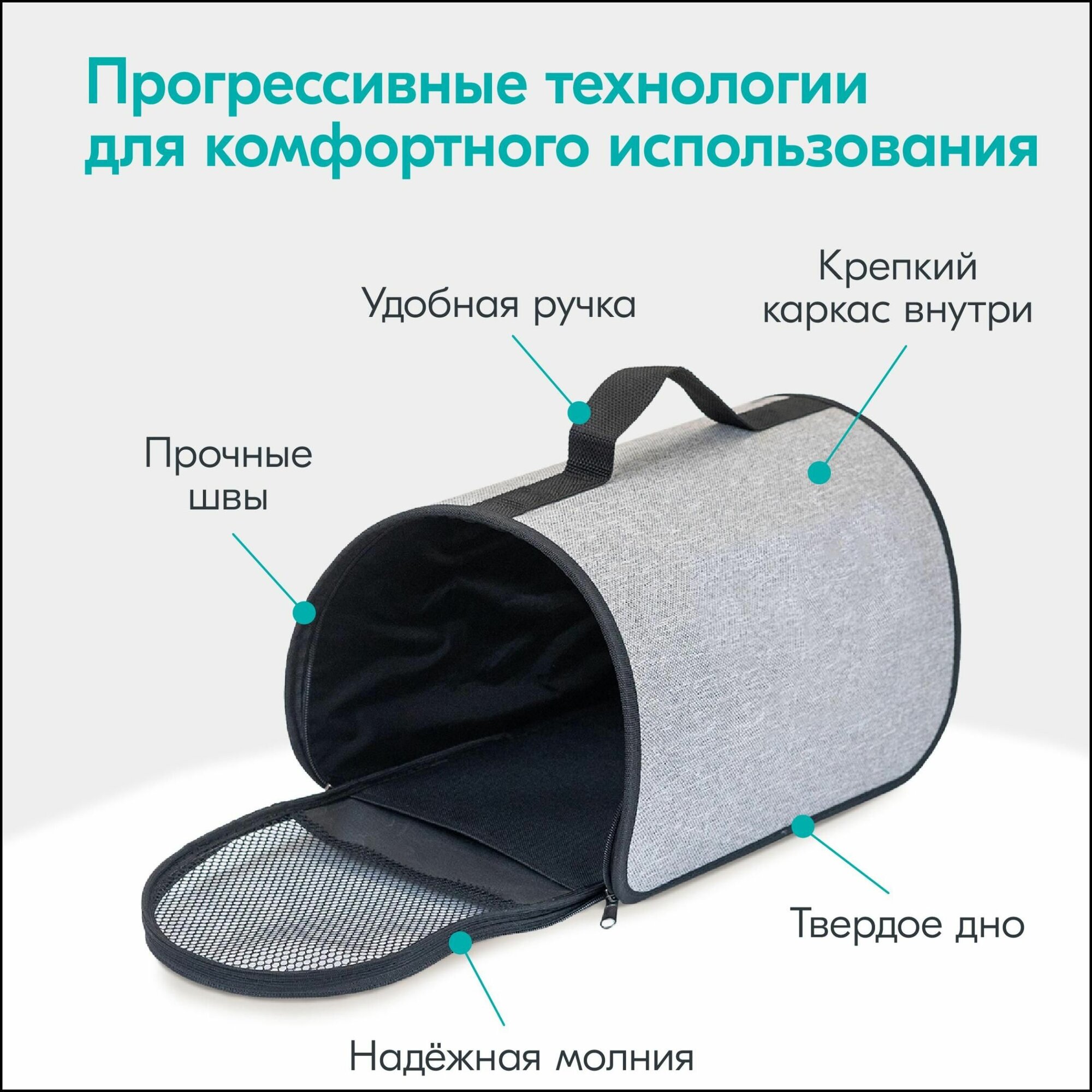 Купить Переноска сумка жёсткая «PetTails» №1 36,5*22*22 (рогожка, пластик) серая -enj с доставкой по всей России.