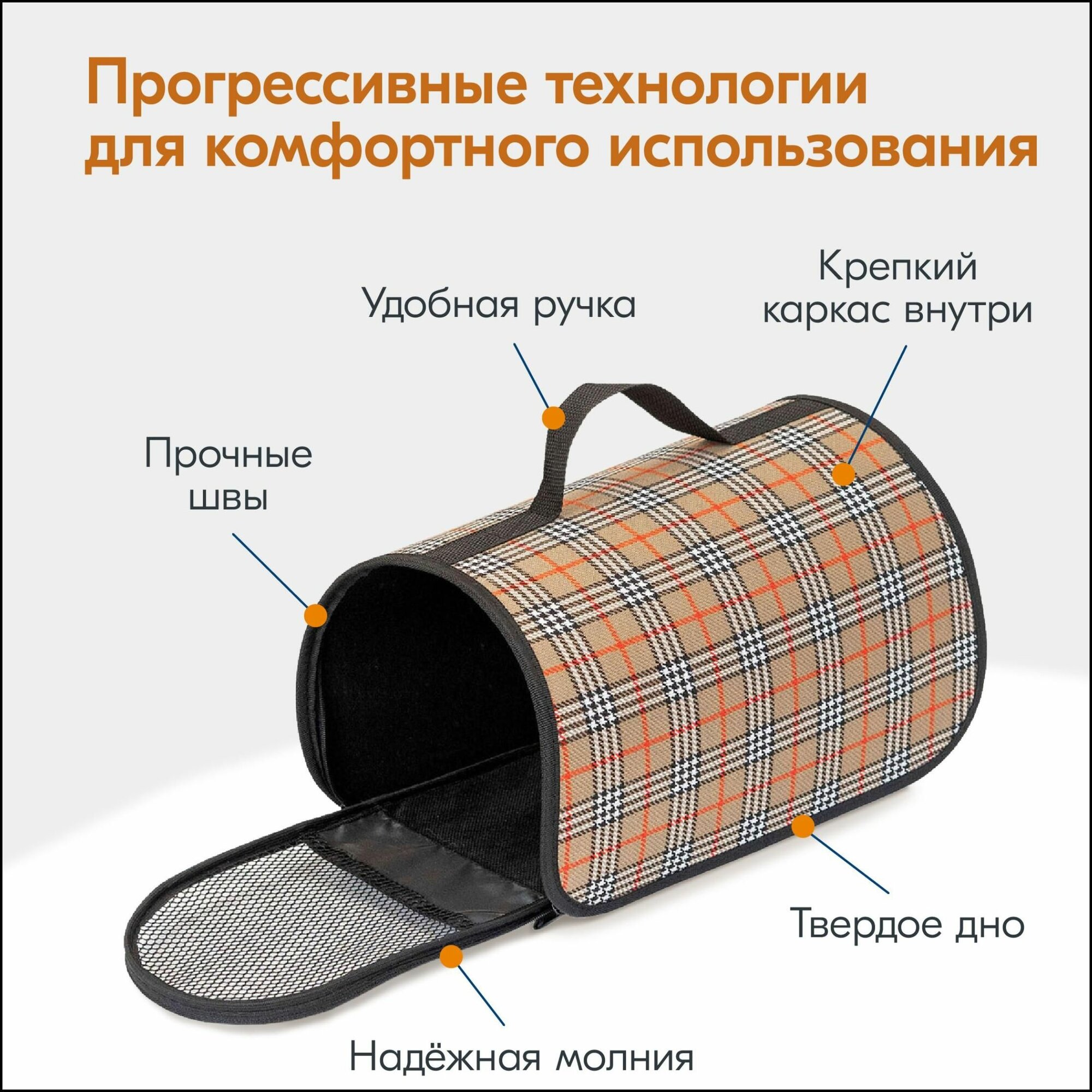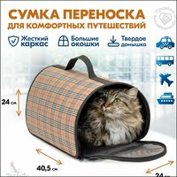 Купить Переноска сумка жёсткая «PetTails» №2 40,5*24*24 (рогожка, пластик) клетчатая -enj с доставкой по всей России.