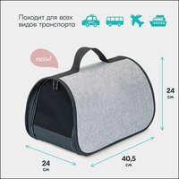 Купить Переноска сумка жёсткая «PetTails» №2 40,5*24*24 (рогожка, пластик) серая -enj с доставкой по всей России.