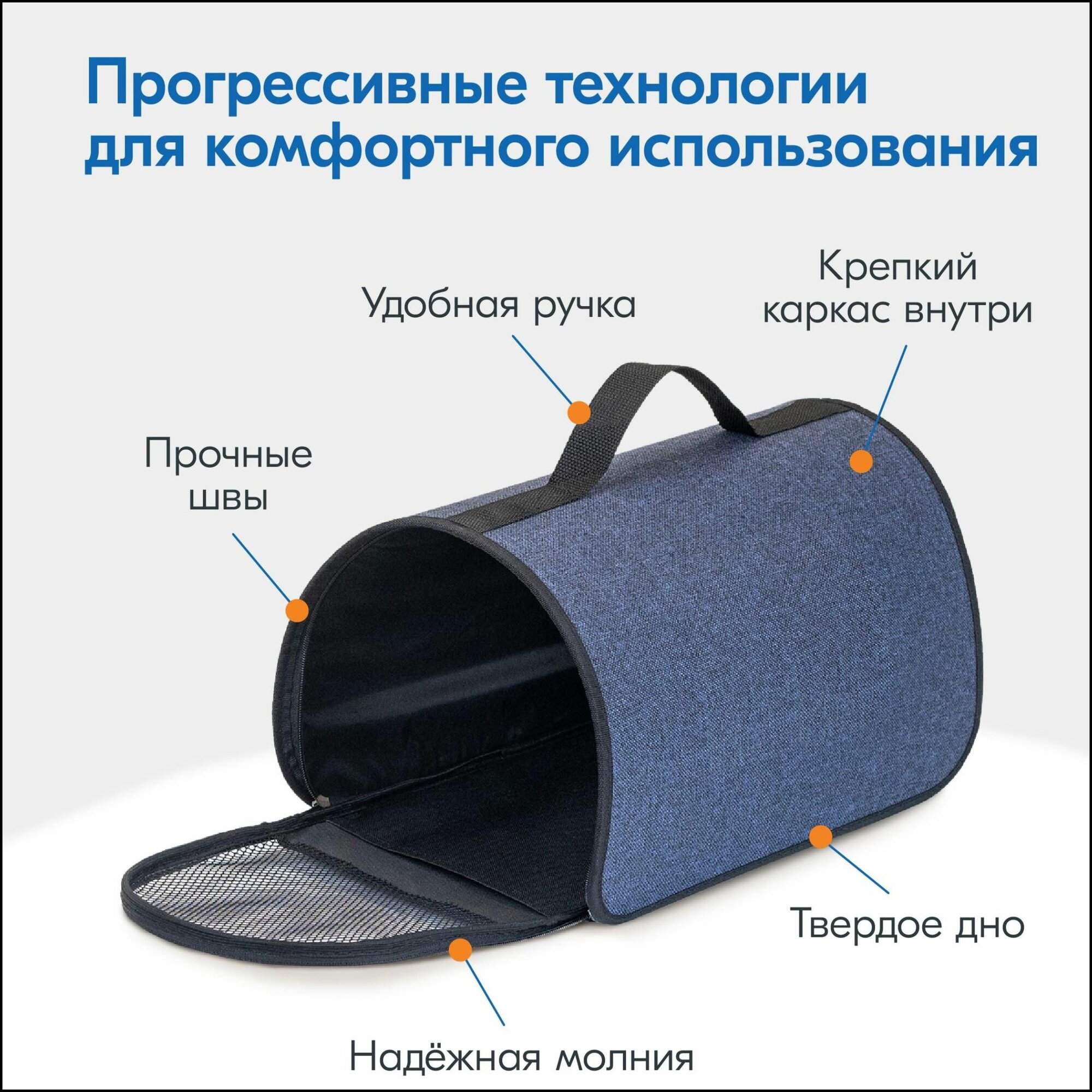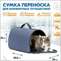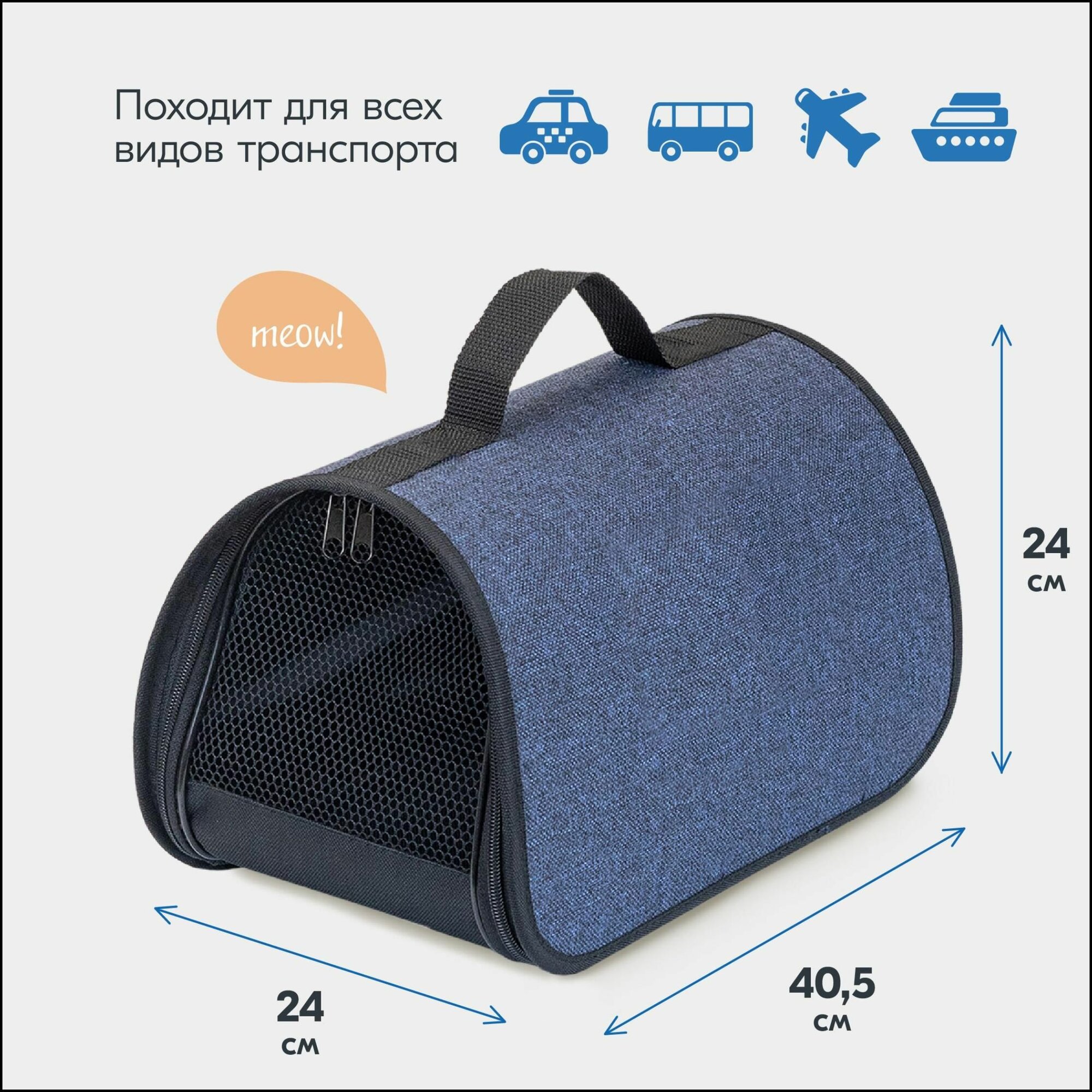 Купить Переноска сумка жёсткая «PetTails» №2 40,5*24*24 (рогожка, пластик) синяя -enj с доставкой по всей России.