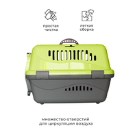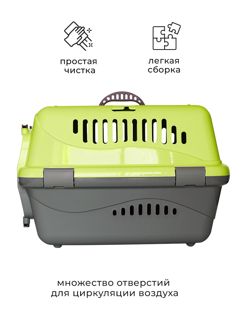 Купить Переноска ZOOexpress Турне для кошек и собак мелких пород, цветная пластиковая дверца, 54,5х36х34 см (L), зелёный с доставкой по всей России.