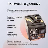 Экономичность. Расход дизельного топлива всего 0,2 – 0,59 л в час. Объем топливного бака 5 литров, а это 10 часов непрерывной работы. Таймер включения / отключения и климат контроль позволят экономно расходовать горючее, поддерживать установленную температуру в помещении в заданные периоды времени. Интуитивно понятное управление. Пульт дистанционного управления с возможностью установки температуры, напряжения, таймера включения/выключения, контроля напряжения АКБ, контроля окружающей температуры.