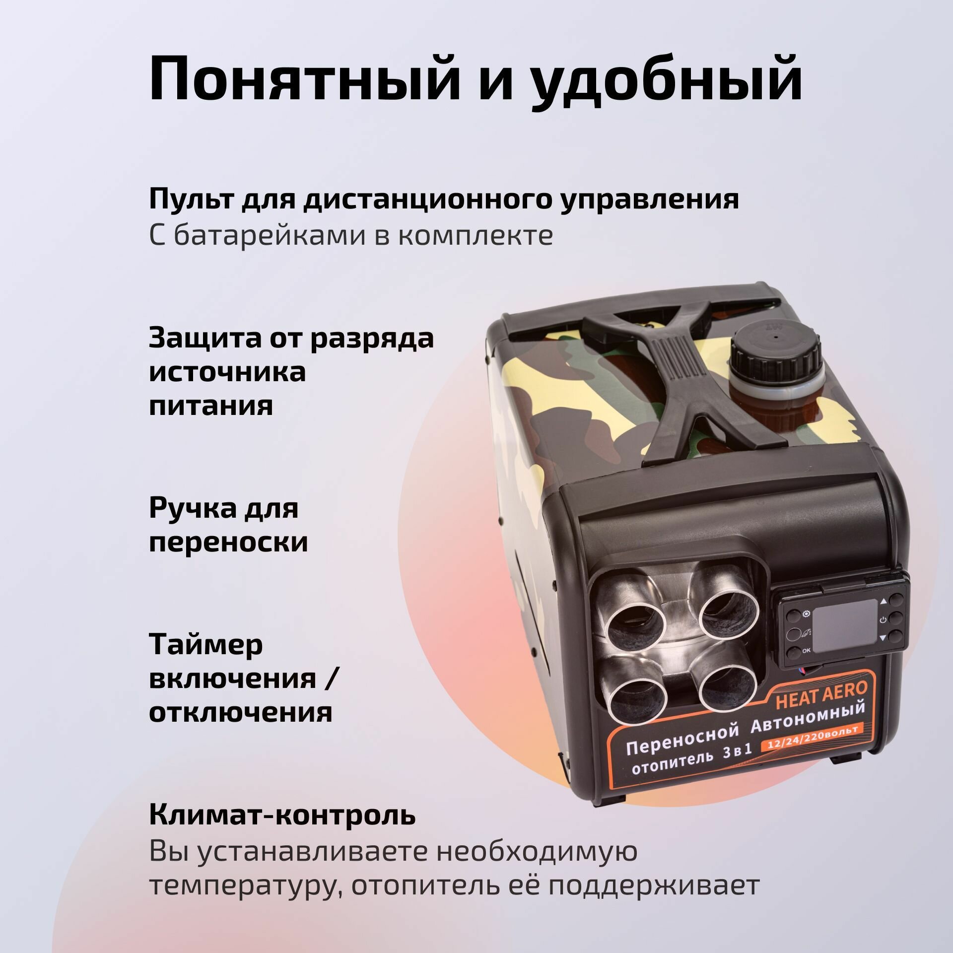 Автономный дизельный переносной отопитель — это надежное решение для создания комфортной температуры в вашем автомобиле, гараже, палатке, салоне или кузове легковых или грузовых автомобилей, авто прицепов, обогрева мастерской, торгового павильона, дачи, теплицы, складских помещений объемом до 200 куб. м.