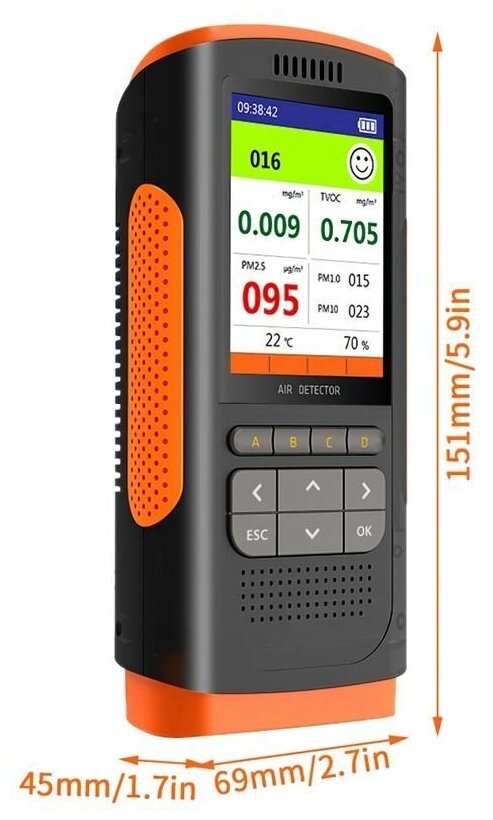 Переносной монитор качества воздуха, концентрации микрочастиц PM1.0/PM2.5/PM10, формальдегида, летучих органических веществ. Индикатор температуры и влажности.: сравнение цен, характеристики, фото, актуальное наличие и цены.