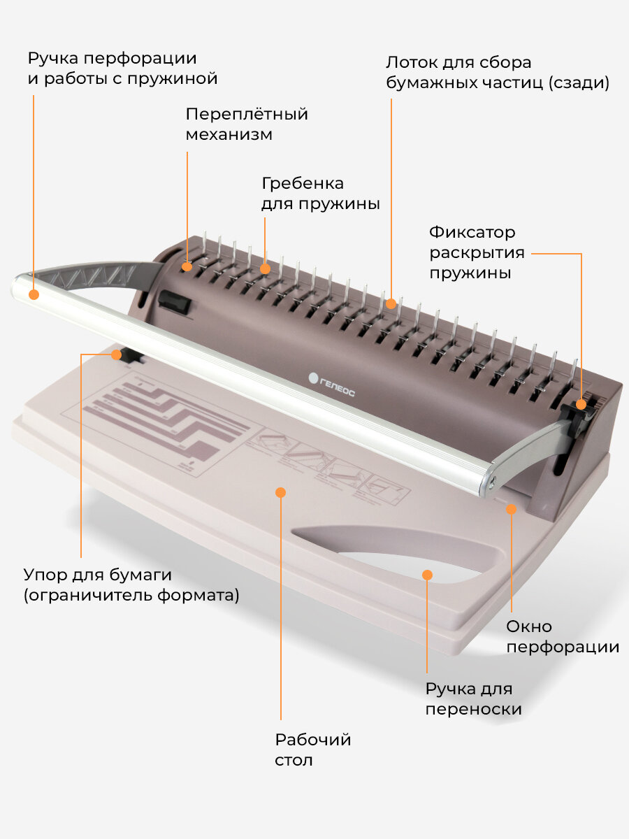 Брошюратор А4 на пластиковую пружину, ГЕЛЕОС БП-9+, пробивает до 9 л: сравнение цен, характеристики, фото, актуальное наличие и цены.