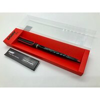 LAMY joy (015) Перьевая ручка для каллиграфии и креативного письма. Удлиненный корпус создает идеальный баланс при письме. Плоское перо позволяет добиваться чередования толщины линии и делает почерк выразительным как при повседневном письме, так и при написании писем, поздравлений, приглашений и т. п. Выполнена из прочного блестящего пластика. Эргономичный хват, позволяющий пальцам принять правильное положение при письме. Металлический клип на колпачке напоминает по форме канцелярскую скрепку. Окошко на корпусе позволяет контролировать расход чернил. Стальное плоское заменяемое перо 1,5 мм. Перьевая ручка используется с чернильными картриджами LAMY T10 или с конвертером LAMY Z28 для заправки чернилами из флакона LAMY T51, LAMY T52 или LAMY T53. Комплектация: подарочная коробка, чернильный картридж синего цвета LAMY T10, инструкция. Дизайн: Вольфганг Фабиан История бренда LAMY насчитывает более 80-ти лет, а его философия заключается в слогане «Дизайн. Сделано в Германии». Компания получила более 100 самых престижных дизайнерских наград. Все пишущие инструменты LAMY производятся на фабрике в Гейдельберге (Германия).