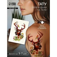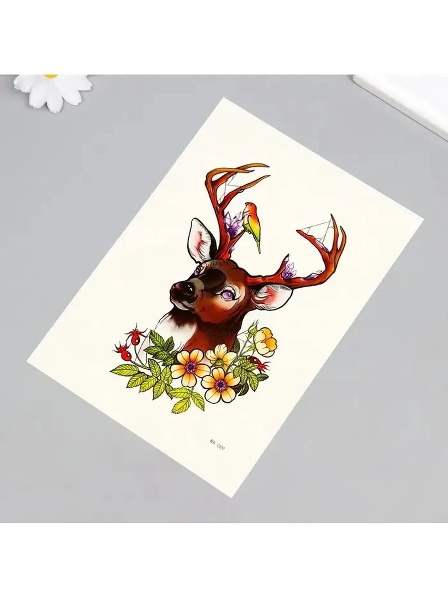 Переводная тату на тело цветная «Олень с птичкой», 26.2×14.5: сравнение цен, характеристики, фото, актуальное наличие и цены.