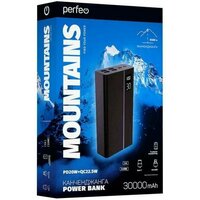 Perfeo Powerbank MOUNTAINS 30000 mAh/LED дисплей/PD + QC 3.0/Type-C/4 USB/Выход: 3A, max 22.5W/Black (PF_D0161)