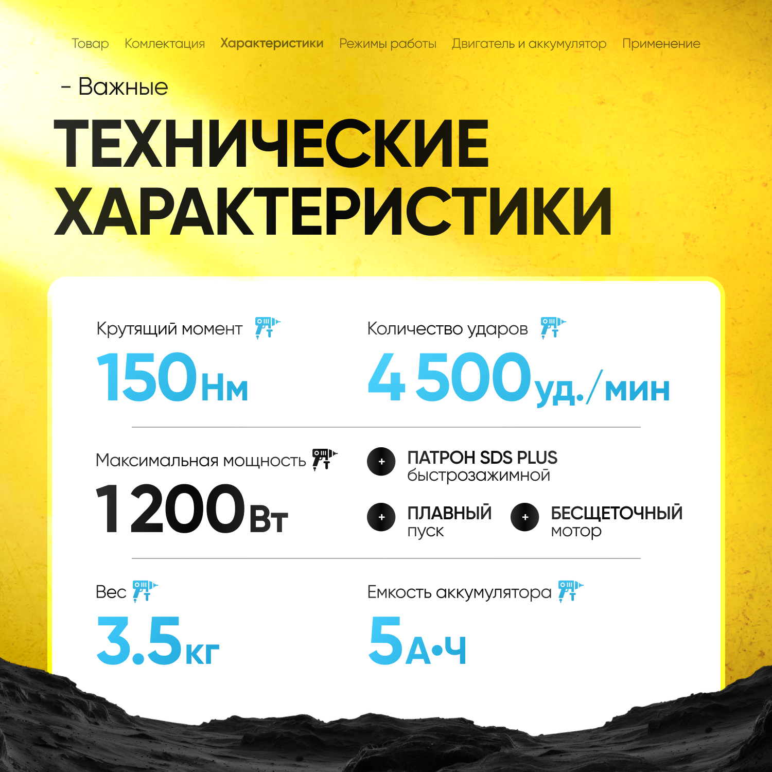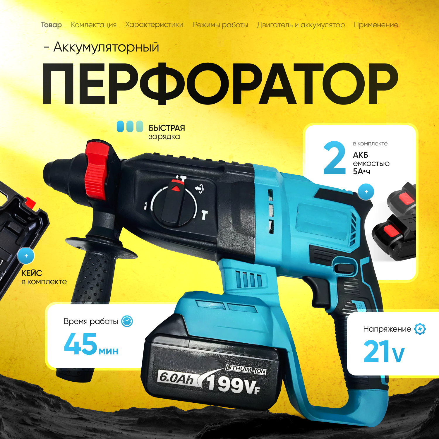 Купить Перфоратор 1200 Вт, бесщеточный двигатель, 2 аккумулятора, 4 режима, кейс с доставкой по всей России. Перфоратор 1200 Вт, бесщеточный двигатель, 2 аккумулятора, 4 режима, кейс: сравнение цен, характеристики, фото, актуальное наличие и цены.