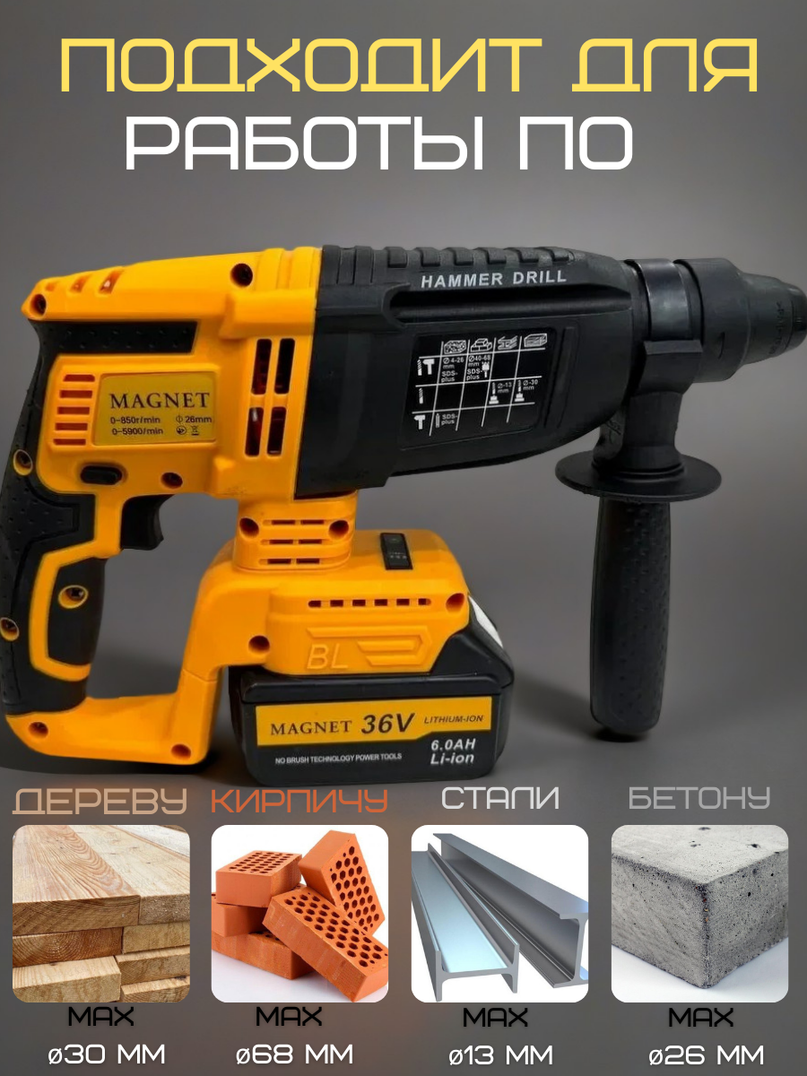 Купить Перфоратор аккумуляторный ударный 36V Magnet профессиональный с доставкой по всей России. Перфоратор аккумуляторный ударный 36V Magnet профессиональный: сравнение цен, характеристики, фото, актуальное наличие и цены.