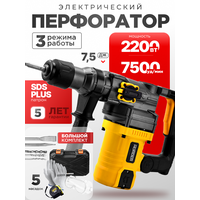 Купить Перфоратор электрический Horder V-VERT-2200, кейс, 2200 Вт, 1400 об/мин, 7500 уд/мин, буры в комплекте с доставкой по всей России.