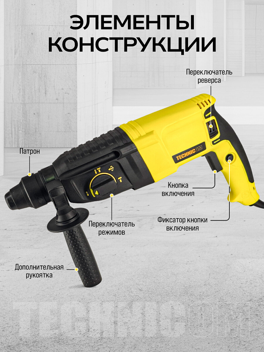 Перфоратор электрический TECHNICOM TC-ERH26, 800Вт, 220В, 900 об/мин, 4000 уд/мин: сравнение цен, характеристики, фото, актуальное наличие и цены.