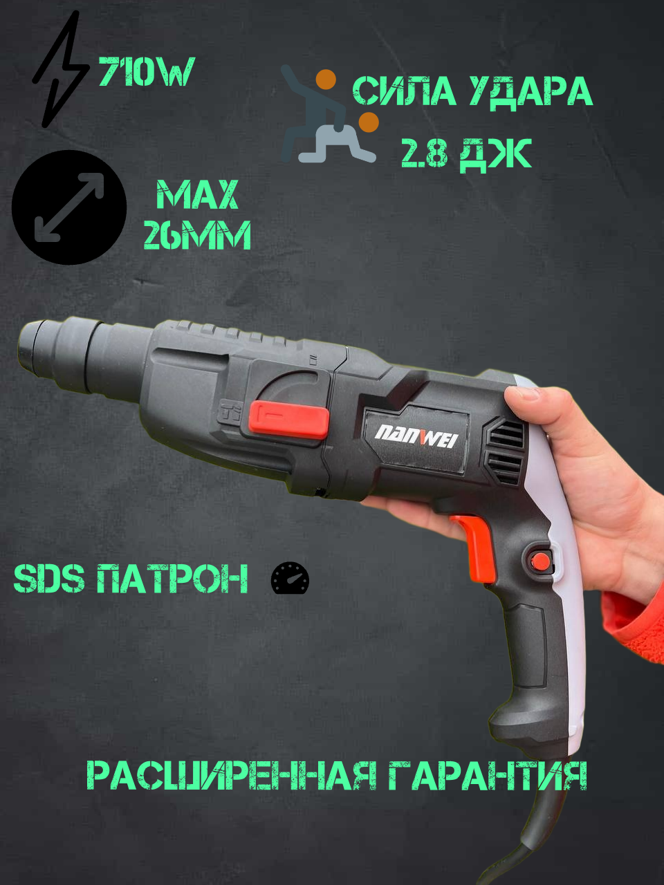 Перфоратор NANWEI 700w, черный, мощный и стильный, кабель 2 м, патроном типа SDS-Plus,: сравнение цен, характеристики, фото, актуальное наличие и цены.