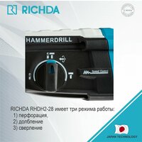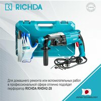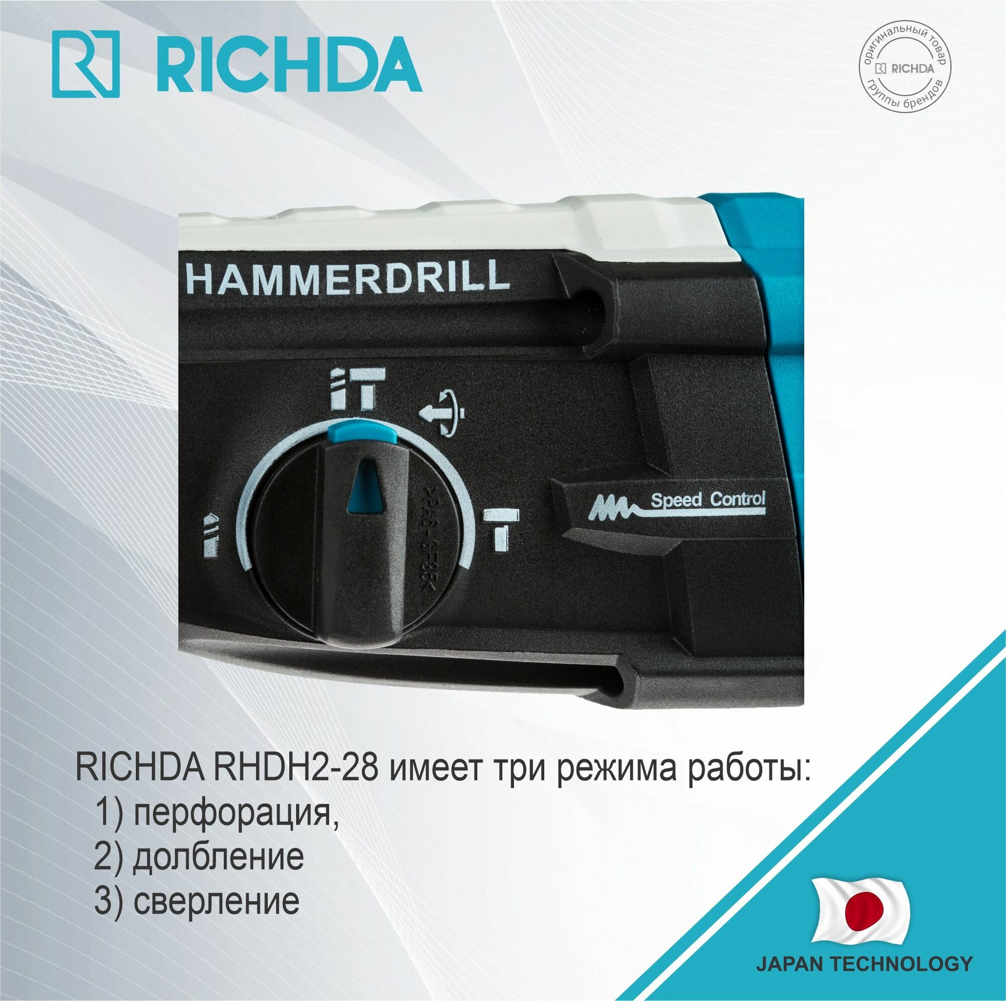 Купить Перфоратор полупрофессиональный в оригинальном кейсе RICHDA RHDH2-28, SDS Plus 900Вт 3.2 Дж 4000уд/мин, гарантия 3 года с доставкой по всей России.