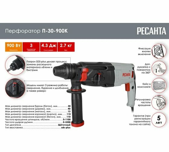 Купить Перфоратор Ресанта П-30-900К 75/3/2 с доставкой по всей России. Перфоратор Ресанта П-30-900К 75/3/2: сравнение цен, характеристики, фото, актуальное наличие и цены.