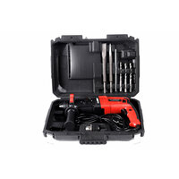 Дополнительный ключевой патрон 1/2“ 20-UNF 13мм с хостовиком SDS+; бур-3шт., пика, долото; Ограничитель глубины сверления; Дополнительная рукоять; Пластиковый кейс.