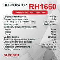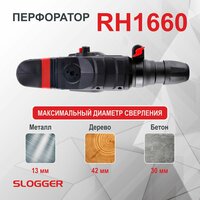 Купить Перфоратор сетевой SDS-plus Slogger RH1660, 1600 Вт, 6 Дж с доставкой по всей России.