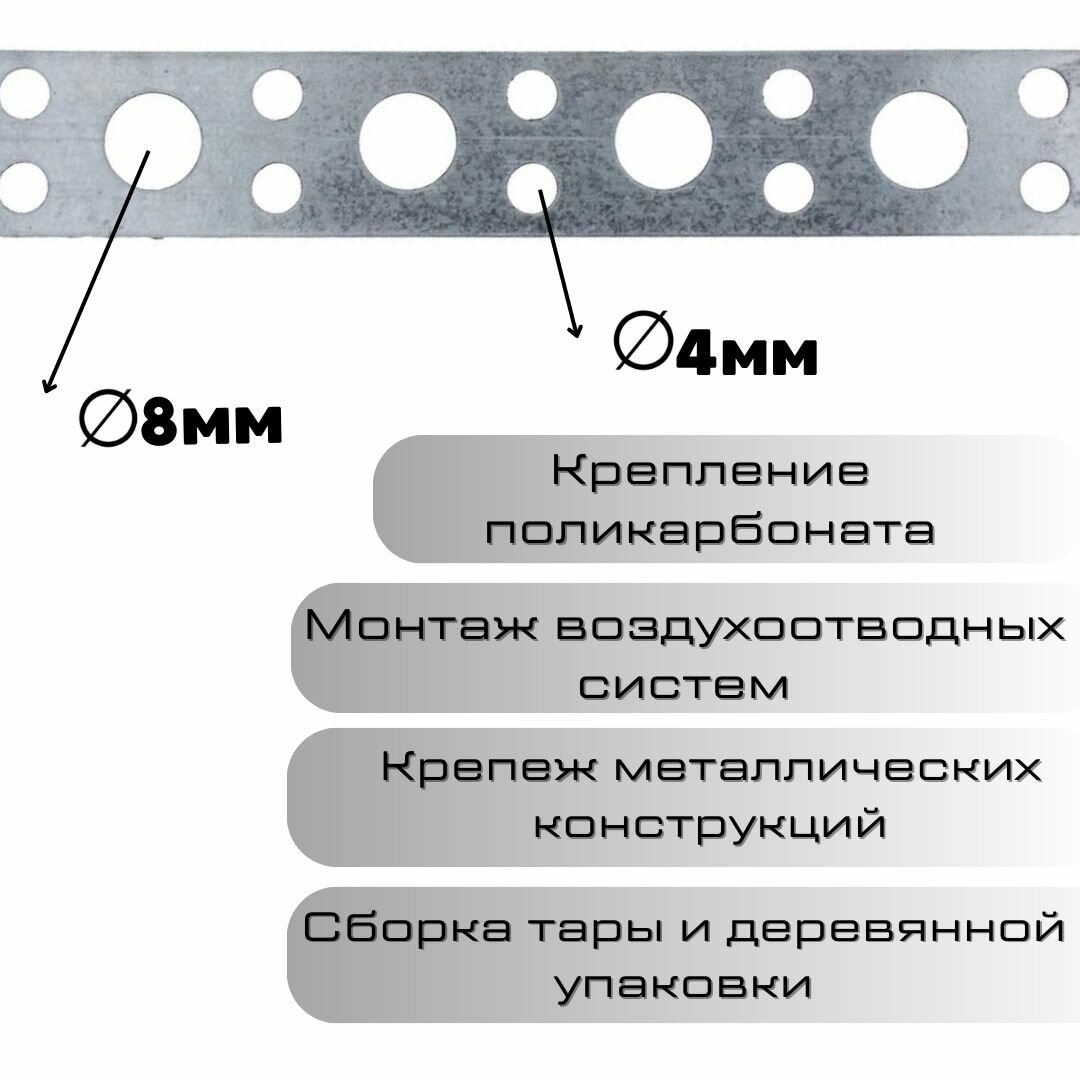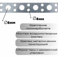 Перфорированная лента относится к универсальным видам крепежа, поскольку помогают решать разнообразные задачи в области строительства, производства, архитектуры, рекламы. Ее допускается использовать для проведения следующих операций:-Монтаж воздухоотводных систем;-Сборка тары и деревянной упаковки;-Крепление поликарбоната;-Крепеж металлических конструкций и т. д. Компания "Металлико" предлагает следующие варианты перфорированной ленты:-монтажная – отличается универсальностью применения, поскольку подходит для крепления как нагружаемых тяжеловесных конструкций, массивных воздуховодов, так и для установки легковесных инженерных систем;-прямая – отличается повышенной гибкостью и небольшими размерами, используется для скрепления деревянных деталей и элементов ненагружаемых сооружений;-волнистая (или типа "волна") – имеет волнистую кромку, применяется для подвешивания и скрепления легковесных конструкций;-тарная – ее используют для сборки упаковки: различных ящиков, лотков, бочек и прочих изделий.