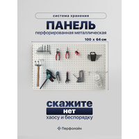 Перфорированная панель металлическая, Перфолайн, белая ,100×64 см, без крючков; органайзер для инструментов: сравнение цен, характеристики, фото, актуальное наличие и цены.