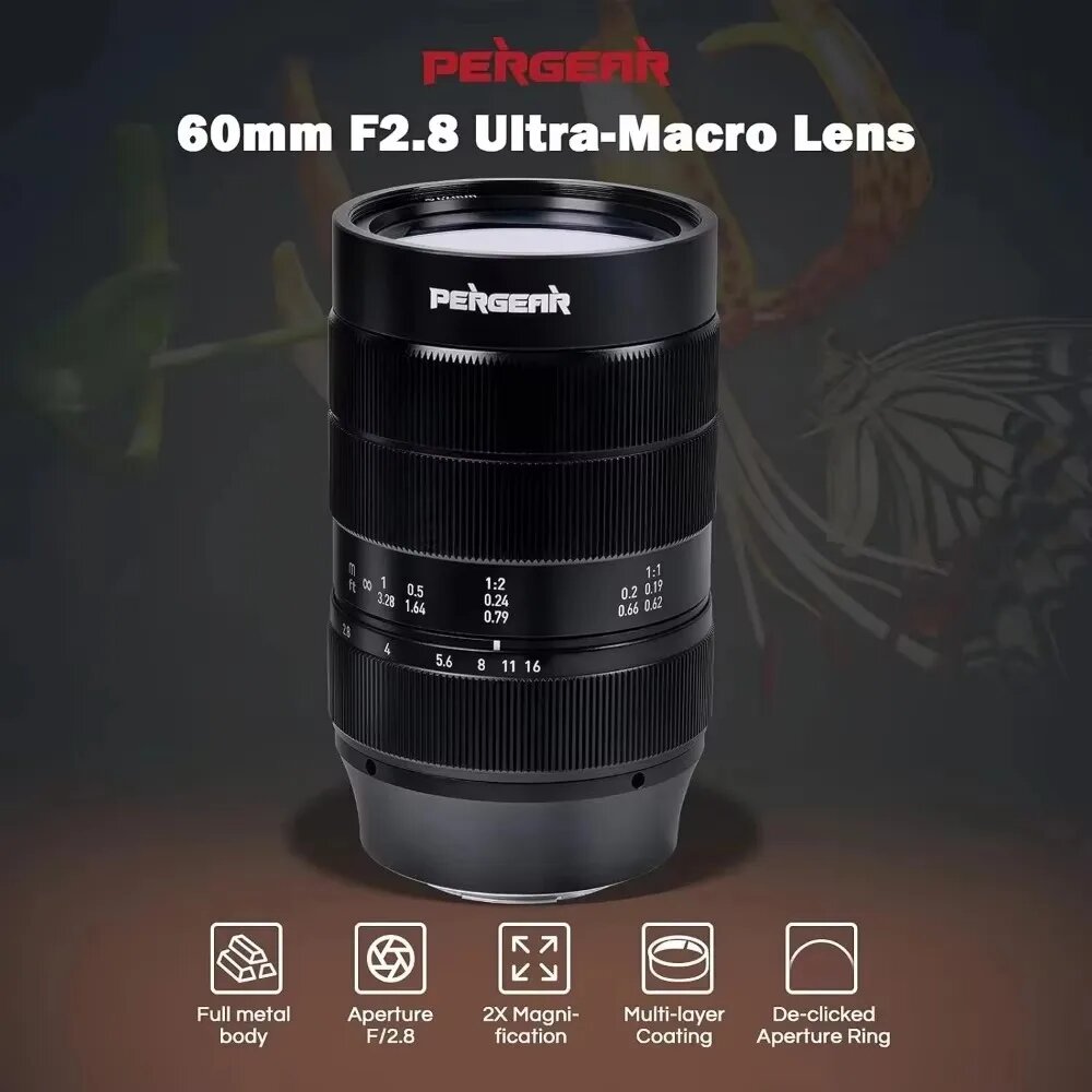 PERGEAR 60 мм F2.8 II Ultra Macro Объектив для Sony E Fuji X-mount