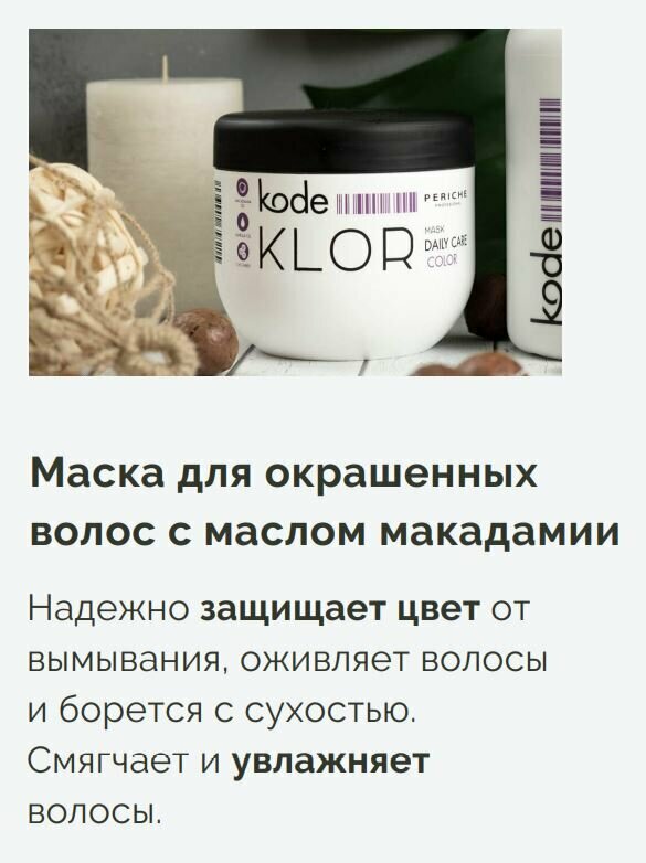 | Эффект | антистатик, восстановление, защита от негативного воздействия окружающей среды, защита цвета, облегчение расчесывания, питание, придание блеска, придание мягкости, придание эластичности, против секущихся кончиков |