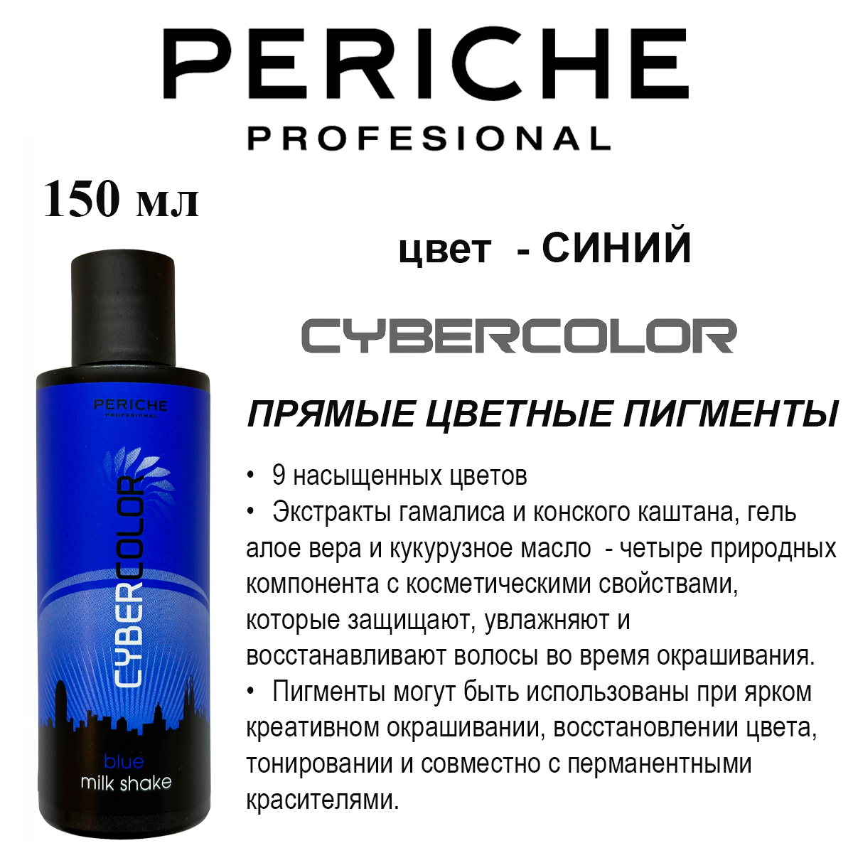 Periche Profesional Краситель прямого действия Cyber Color Milk Shake, blue, 150 мл: сравнение цен, характеристики, фото, актуальное наличие и цены.