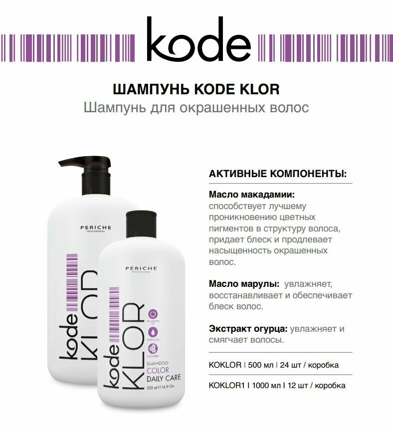 Купить PERICHE PROFESIONAL Шампунь для окрашенных волос KODE KLOR 500 мл с доставкой по всей России. PERICHE PROFESIONAL Шампунь для окрашенных волос KODE KLOR 500 мл: сравнение цен, характеристики, фото, актуальное наличие и цены.