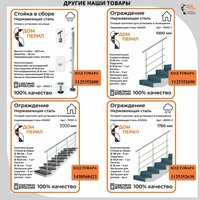 Комплект ограждений 1м (1000 мм) изготовлен из нержавеющей стали AISI 304, предназначен для эксплуатации в помещениях и на улице. Готовый комплект ограждения Дом перил– это экономия Вашего времени и денег. Приобретая готовый комплект, Вы можете самостоятельно собрать ограждение, не привлекая дорогостоящую монтажную бригаду. Стойки изготовлены на нашем производстве с применением аргонной сварки, благодаря чему все элементы составляют единую конструкцию. Сварные швы стойки идеально заполированы. Стойка легко монтируется к полу благодаря треханкерному фланцу с отверстиями под анкер-болт М8. Крепеж скрывает декоративная крышка. Ригеля фиксируются при помощи шестигранника. Поручень из нержавеющей стали так же легко закрепить при помощи сверла по нержавеющей стали и самореза. Прекрасный вариант для мастера, кто хочет поставить ограждение самостоятельно и не тратить время и деньги на сторонние монтажные работы.