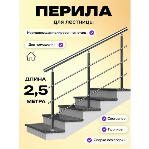 Комплект ограждений 2500 мм изготовлен из нержавеющей стали AISI 201, предназначен для эксплуатации в помещениях. Готовый комплект ограждения Дом перил– это экономия Вашего времени и денег. Приобретая готовый комплект, Вы можете самостоятельно собрать ограждение, не привлекая дорогостоящую монтажную бригаду. Стойки изготовлены на нашем производстве с применением аргонной сварки, благодаря чему все элементы составляют единую конструкцию. Сварные швы стойки идеально заполированы. Стойка легко монтируется к полу благодаря треханкерному фланцу с отверстиями под анкер-болт М8. Крепеж скрывает декоративная крышка. Ригеля фиксируются при помощи шестигранника. Поручень из нержавеющей стали так же легко закрепить при помощи сверла по нержавеющей стали и самореза. Прекрасный вариант для мастера, кто хочет поставить ограждение самостоятельно и не тратить время и деньги на сторонние монтажные работы.