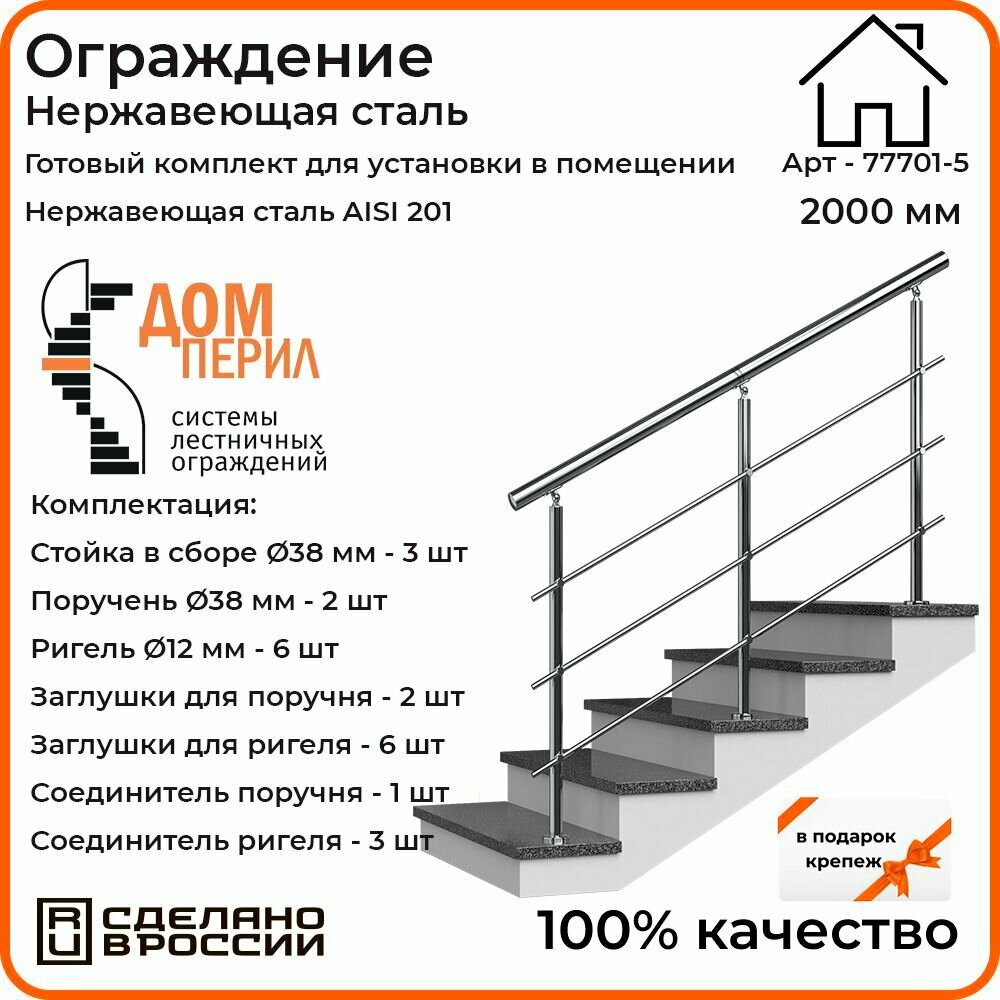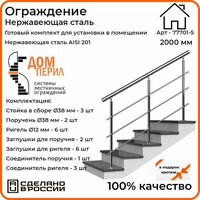 Комплект ограждений 2000 мм изготовлен из нержавеющей стали AISI 201, предназначен для эксплуатации в помещениях. Готовый комплект ограждения Дом перил– это экономия Вашего времени и денег. Приобретая готовый комплект, Вы можете самостоятельно собрать ограждение, не привлекая дорогостоящую монтажную бригаду. Стойки изготовлены на нашем производстве с применением аргонной сварки, благодаря чему все элементы составляют единую конструкцию. Сварные швы стойки идеально заполированы. Стойка легко монтируется к полу благодаря треханкерному фланцу с отверстиями под анкер-болт М8. Крепеж скрывает декоративная крышка. Ригеля фиксируются при помощи шестигранника. Поручень из нержавеющей стали так же легко закрепить при помощи сверла по нержавеющей стали и самореза. Прекрасный вариант для мастера, кто хочет поставить ограждение самостоятельно и не тратить время и деньги на сторонние монтажные работы.