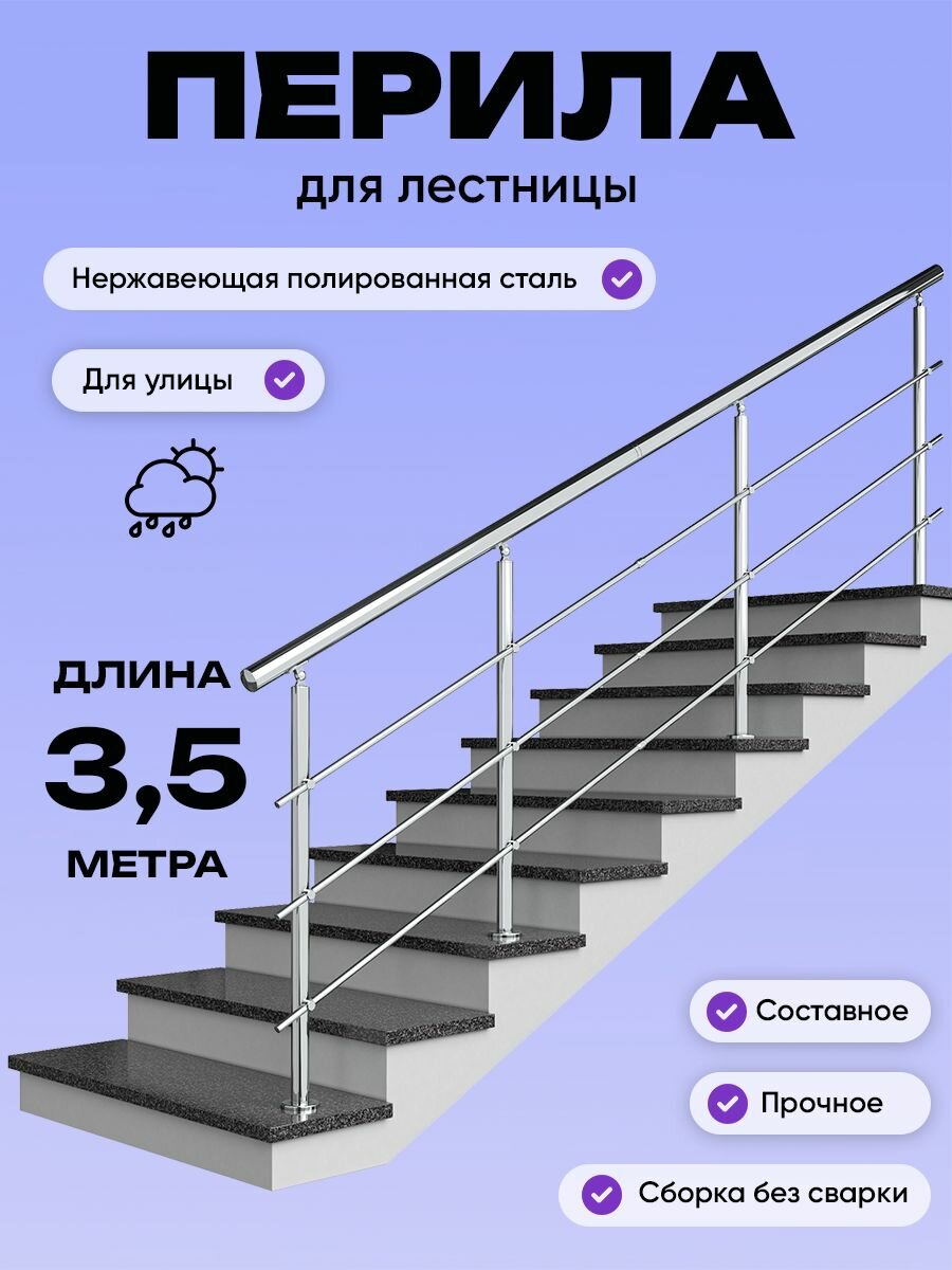 Готовый комплект ограждения изготовлен из нержавеющей стали. Поручень призван облегчить и обезопасить подъем и спуск по лестнице и проход прямых участков. Возможна установка, как на ровной площадке, балюстраде, так и под углом, на лестничном марше. Перила для лестницы убережет от скольжения и падения на скользком полу, а также при входе и выходе. Установка перил будет особенно актуальна для семей с детьми, пожилыми людьми и людьми с ограниченными возможностями, а также инвалидам. Его прочность при ежедневных нагрузках гарантирована качественными материалами. Поручни для лестницы служат опорой при перемещении, обеспечивают защиту от падения, а так же имеют привлекательный современный дизайн. Ограждения для лестницы способны на протяжении десятилетий сохранять привлекательный внешний вид. Процесс установки перил из нержавейки достаточно простой, не требует особых профессиональных навыков, наличия специальных инструментов, так как крепление для ограждения идет в комплекте. Нет необходимости в проведении сварочных работ, технология монтажа не предполагает использование сложных крепежных элементов. Комплект ограждения из нержавейки - это прекрасный вариант для тех, кто хочет купить готовый комплект ограждения и не тратить много времени на монтажные работы.