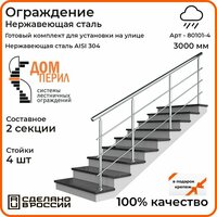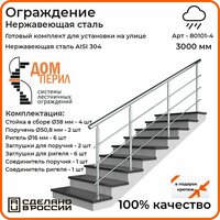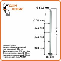 Комплект ограждений 3000 мм изготовлен из нержавеющей стали AISI 304, предназначен для эксплуатации в помещениях и на улице. Готовый комплект ограждения Дом перил – это экономия Вашего времени и денег. Приобретая готовый комплект, Вы можете самостоятельно собрать ограждение, не привлекая дорогостоящую монтажную бригаду. Стойки изготовлены на нашем производстве с применением аргонной сварки, благодаря чему все элементы составляют единую конструкцию. Сварные швы стойки идеально заполированы. Стойка легко монтируется к полу благодаря треханкерному фланцу с отверстиями под анкер-болт М8. Крепеж скрывает декоративная крышка. Ригеля фиксируются при помощи шестигранника. Поручень из нержавеющей стали так же легко закрепить при помощи сверла по нержавеющей стали и самореза. Прекрасный вариант для мастера, кто хочет поставить ограждение самостоятельно и не тратить время и деньги на сторонние монтажные работы. Комплект состоит: • Стойки в сборе с основанием под 3 анкера и декоративными крышками, ригеледержателями и регулируемыми наконечниками под поручень 50,8мм (полностью собраны и готовы к установке), диаметр 38 мм, высота 900 мм – 4 штуки. • Поручень из нержавеющей стали диаметром 50.8 мм, длина 1500 мм – 2 шт. • Заглушки для поручня диаметром 50.8 мм – 2 шт. • Ригели диаметром 16 мм, длиной 1500 мм – 6 шт. • Заглушки для ригеля – 6 шт. • Соединитель прямой внутренний для труб/перил из нержавеющей стали, d 50,8 мм. 1- шт. • Внешняя соединительная втулка для ригеля ∅16 мм - 3 шт. • Крепеж в подарок (Анкера, заклепки, сверло по нержавеющему металлу) Готовый комплект ограждения изготовлен из нержавеющей стали. Поручень призван облегчить и обезопасить подъем и спуск по лестнице и проход прямых участков. Возможна установка, как на ровной площадке, балюстраде, так и под углом, на лестничном марше. Перила для лестницы убережет от скольжения и падения на скользком полу, а также при входе и выходе. Установка перил будет особенно актуальна для семей с детьми, пожилыми людьми и людьми с ограниченными возможностями, а также инвалидам. Его прочность при ежедневных нагрузках гарантирована качественными материалами. Поручни для лестницы служат опорой при перемещении, обеспечивают защиту от падения, а так же имеют привлекательный современный дизайн. Ограждения для лестницы способны на протяжении десятилетий сохранять привлекательный внешний вид. Процесс установки перил из нержавейки достаточно простой, не требует особых профессиональных навыков, наличия специальных инструментов, так как крепление для ограждения идет в комплекте. Нет необходимости в проведении сварочных работ, технология монтажа не предполагает использование сложных крепежных элементов. Комплект ограждения из нержавейки - это прекрасный вариант для тех, кто хочет купить готовый комплект ограждения и не тратить много времени на монтажные работы.