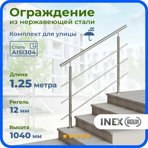Перила для лестницы, длина 1.25 м, ригель 12 мм, ограждение уличное из нержавеющей стали AISI304: сравнение цен, характеристики, фото, актуальное наличие и цены.