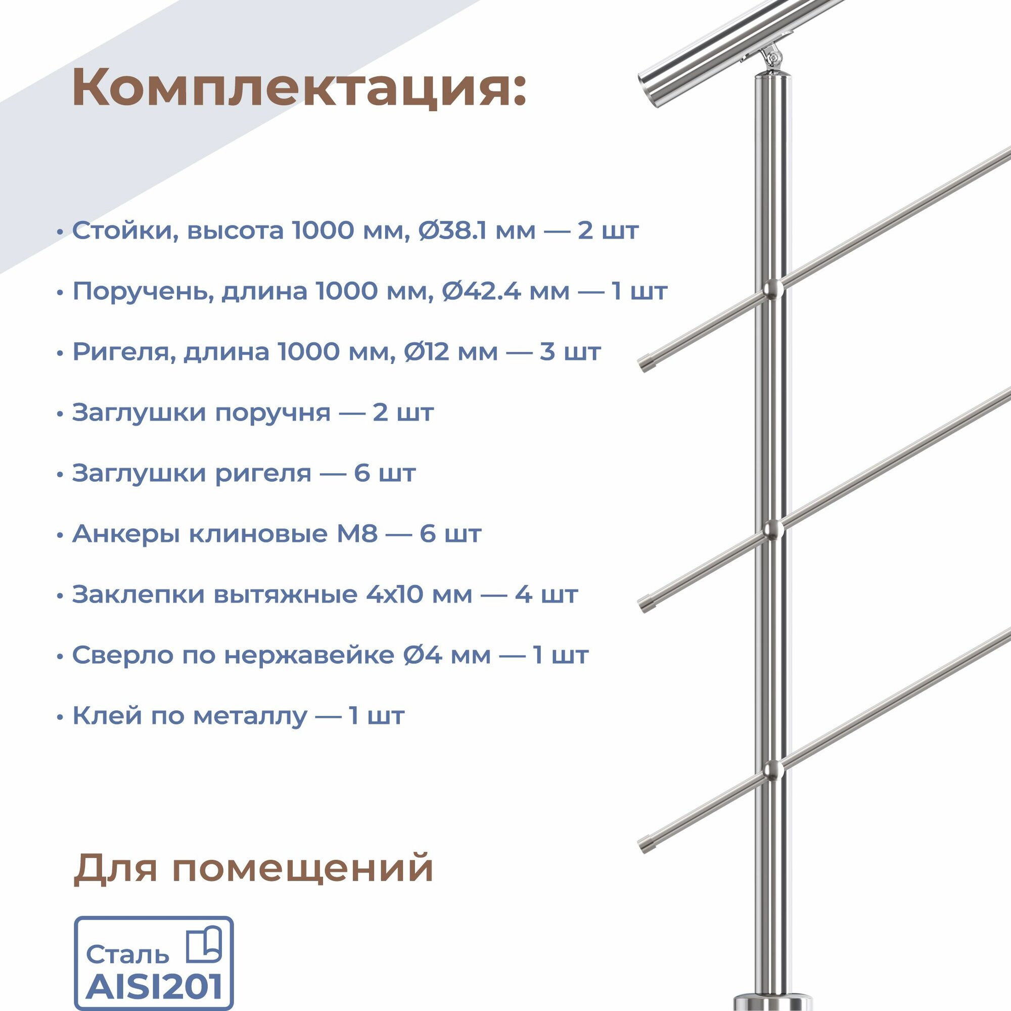 Перила для лестницы, длина 1 м, ригель 12 мм, ограждение для улицы, нержавеющая сталь: сравнение цен, характеристики, фото, актуальное наличие и цены.
