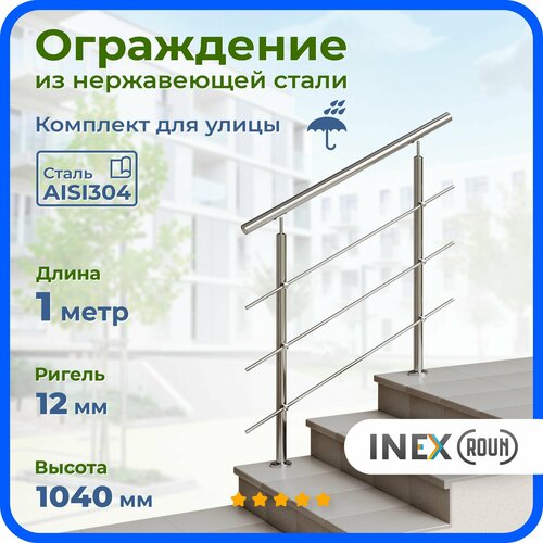 Перила для лестницы INEX Roun 1 метр, ригель 12 мм, ограждение уличное из нержавеющей стали AISI304: сравнение цен, характеристики, фото, актуальное наличие и цены.