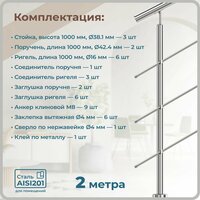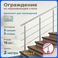 Купить Перила для лестницы INEX Roun 2 метра, 3 стойки, ригель 16 мм, ограждение для помещения из нержавеющей стали AISI201 с доставкой по всей России.