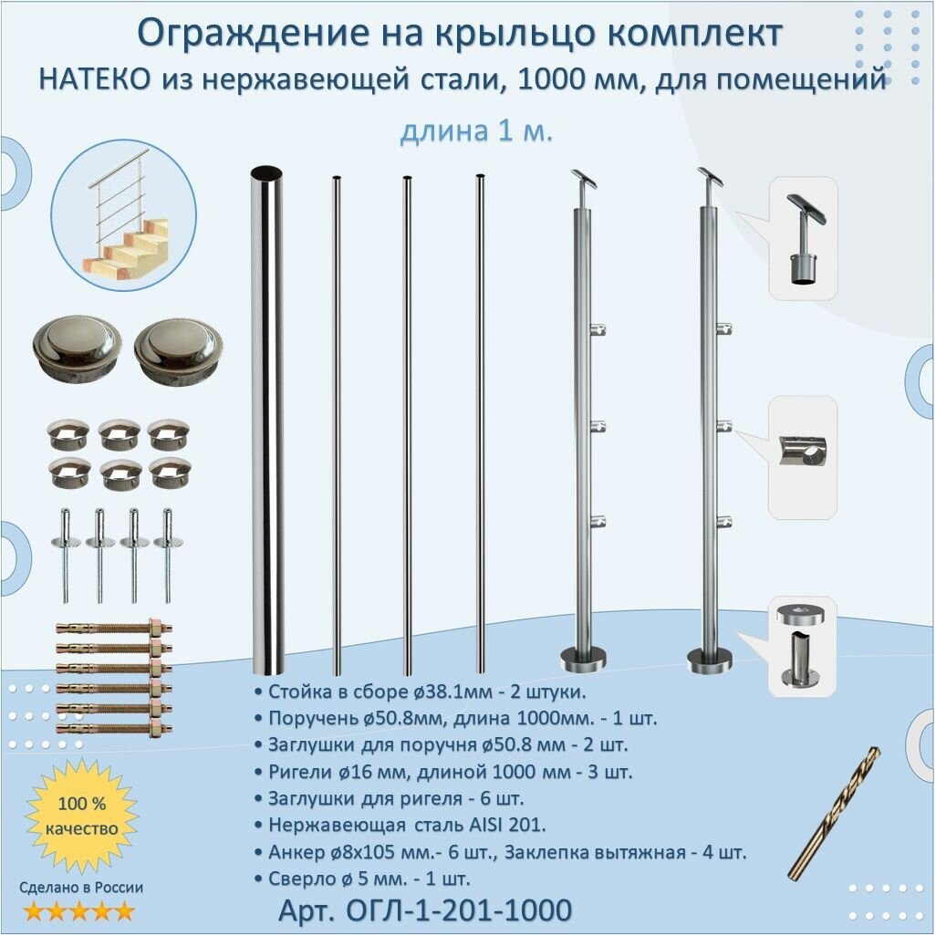 Перила для лестницы натеко, ограждение 1 м. из Нержавеющей Стали AISI 201, поручень 50.8 мм, из нержавейки для Помещения: сравнение цен, характеристики, фото, актуальное наличие и цены.