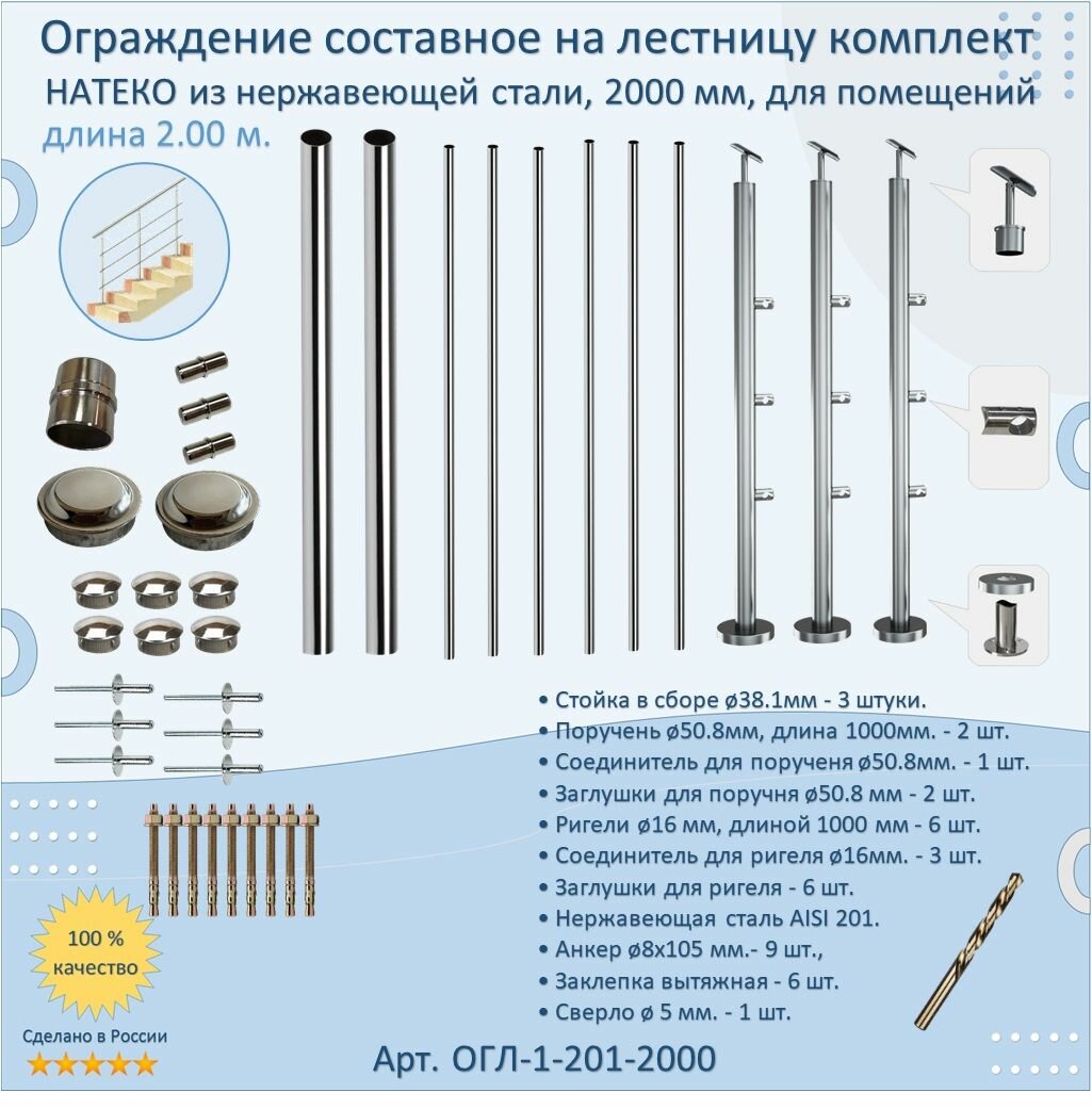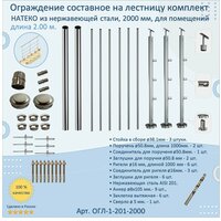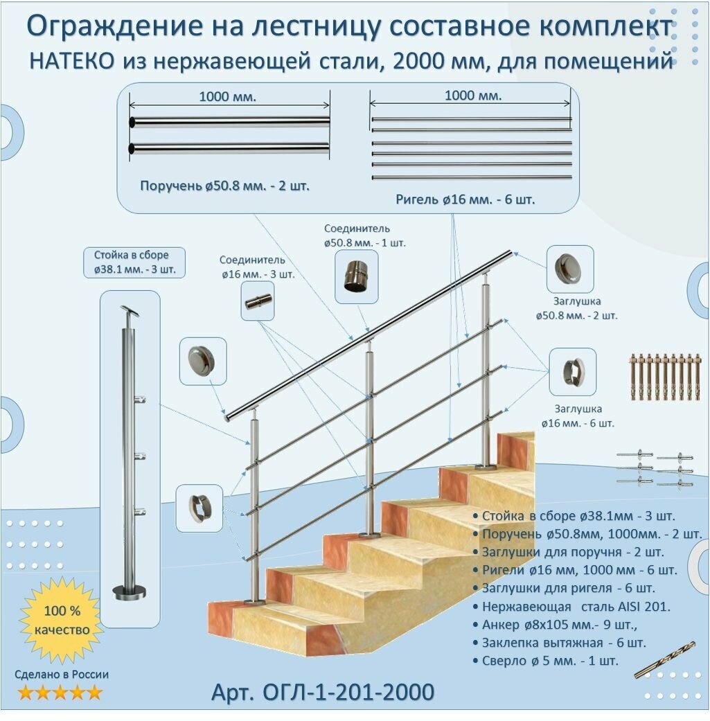 Перила для лестницы натеко, составное ограждение 2 м. из Нержавеющей Стали AISI 201, поручень 50.8 мм, из нержавейки для Помещения: сравнение цен, характеристики, фото, актуальное наличие и цены.