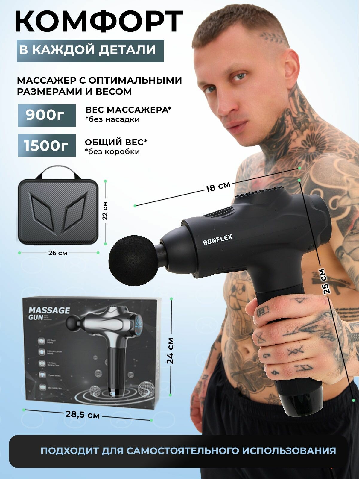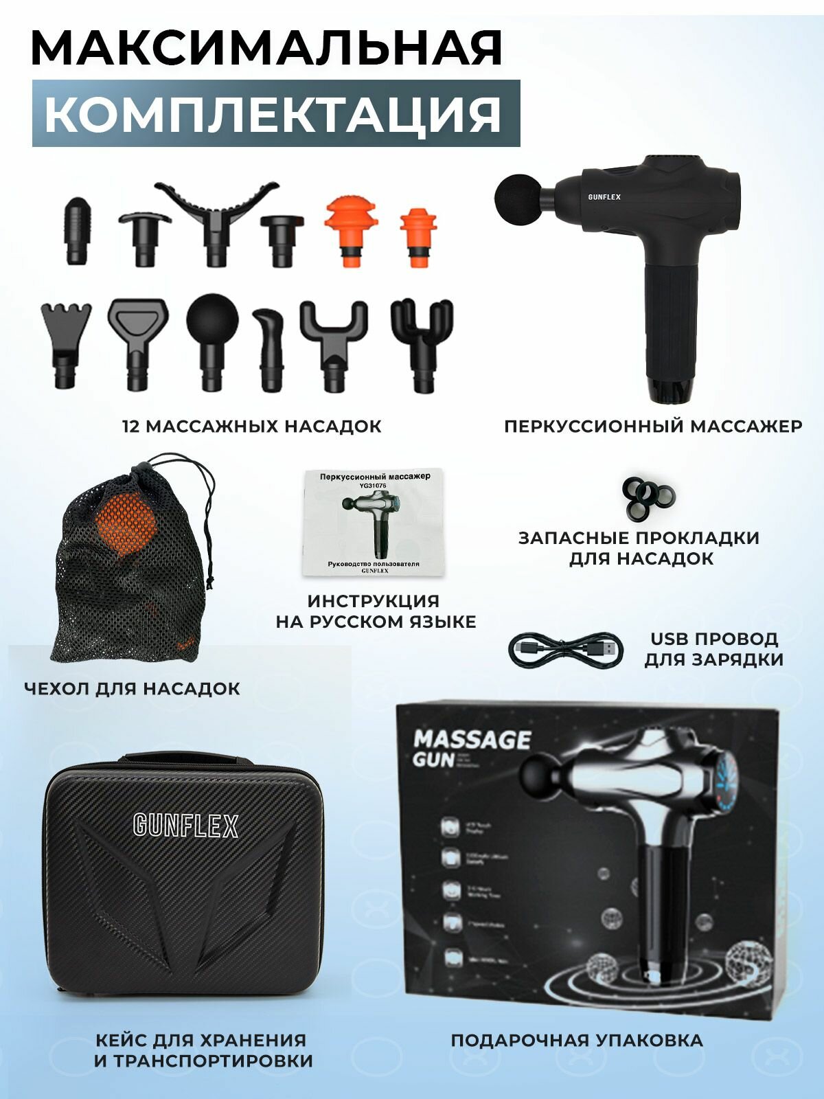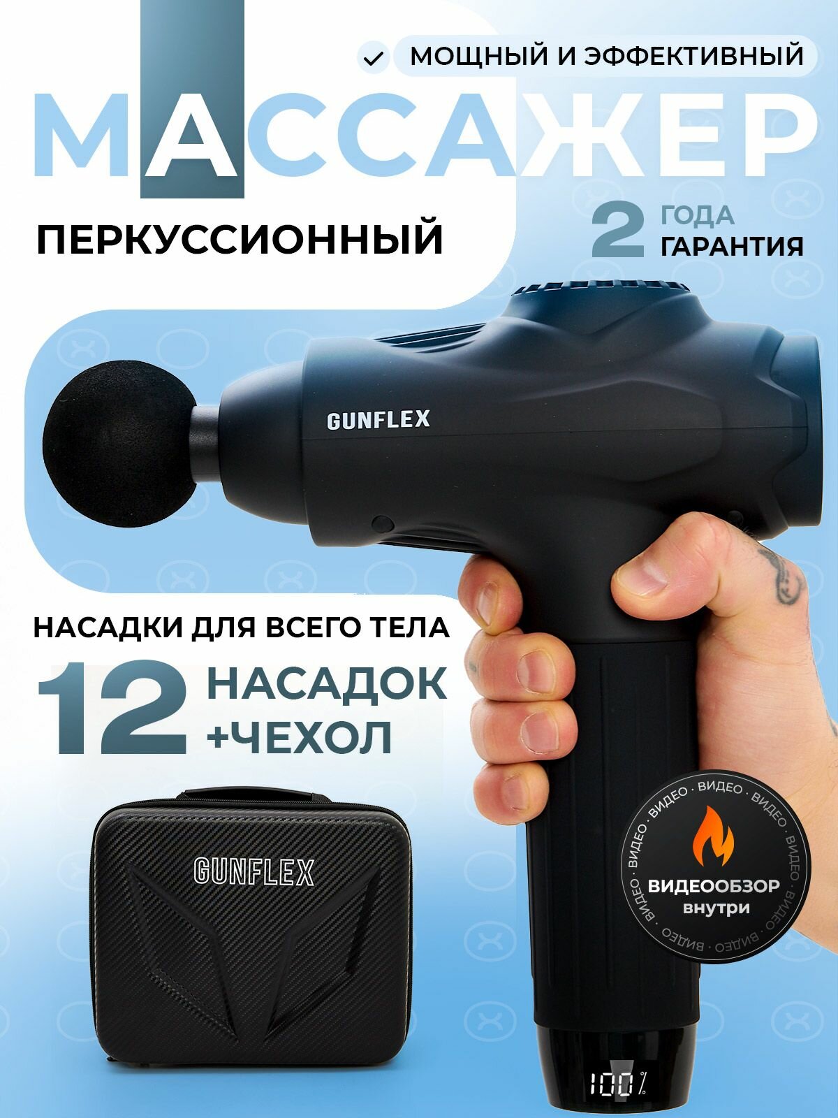 Перкуссионный массажер для тела GUNFLEX PRO / массажный пистолет, 12 насадок: сравнение цен, характеристики, фото, актуальное наличие и цены.