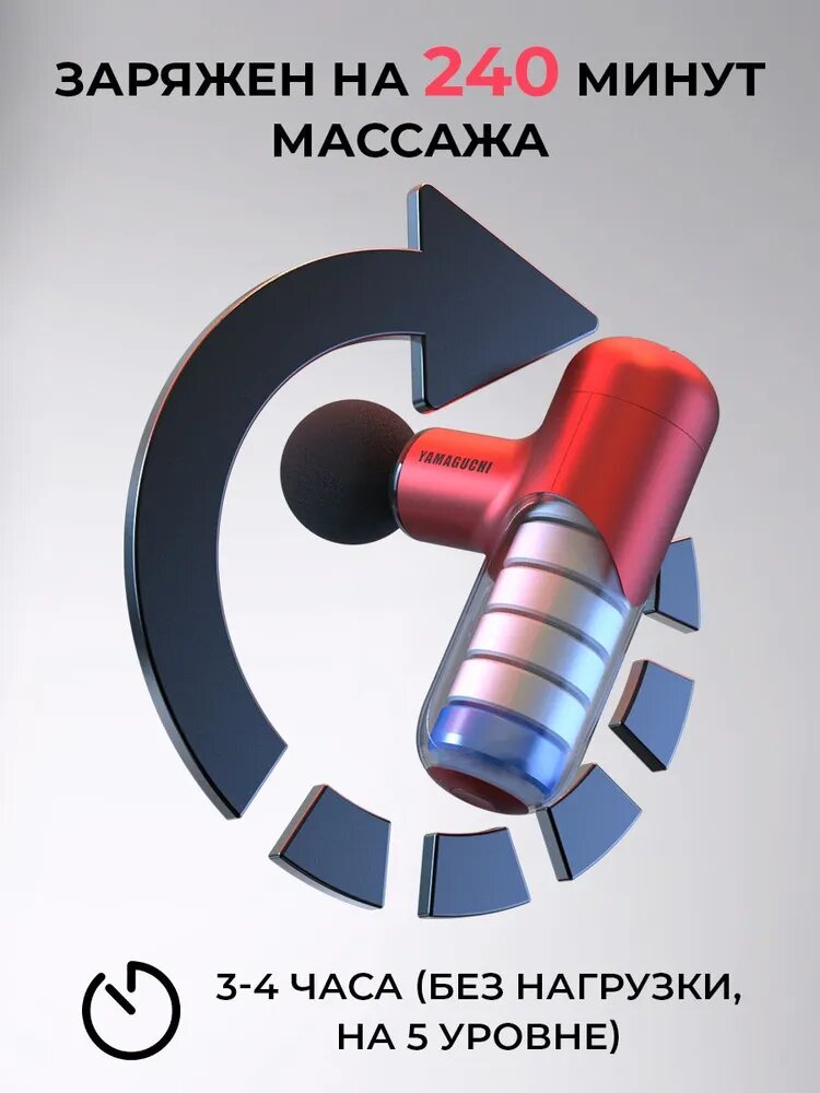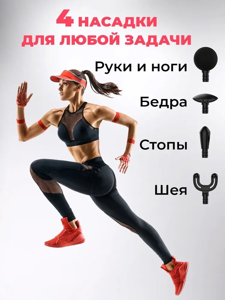 | Подробная комплектация | 4 насадки, Перкуссионный массажер. Сумка-кейс. Type-C кабель |