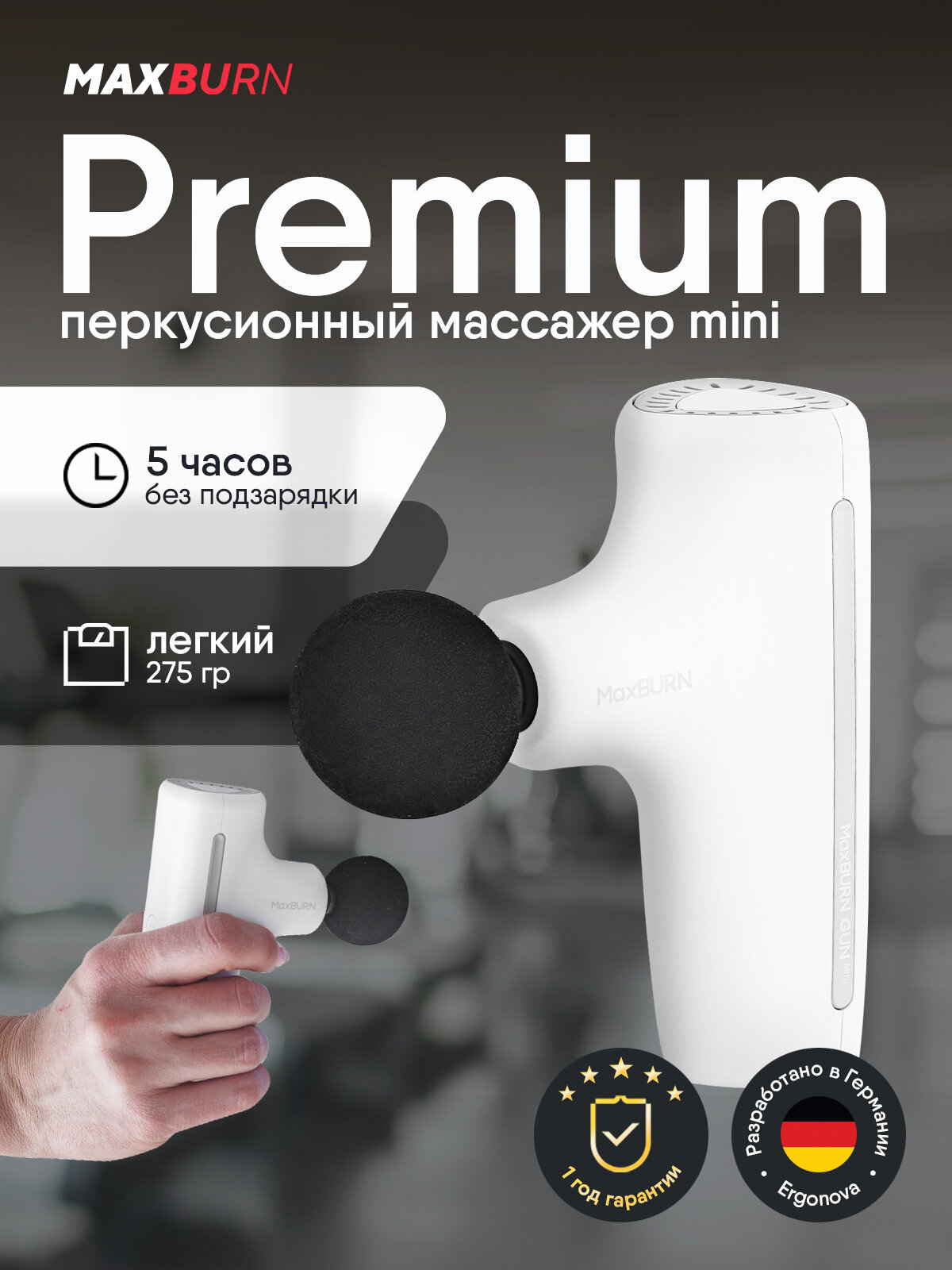 Ergonova MaxBURN GUN mini — супер легкий и компактный перкуссионный массажер.