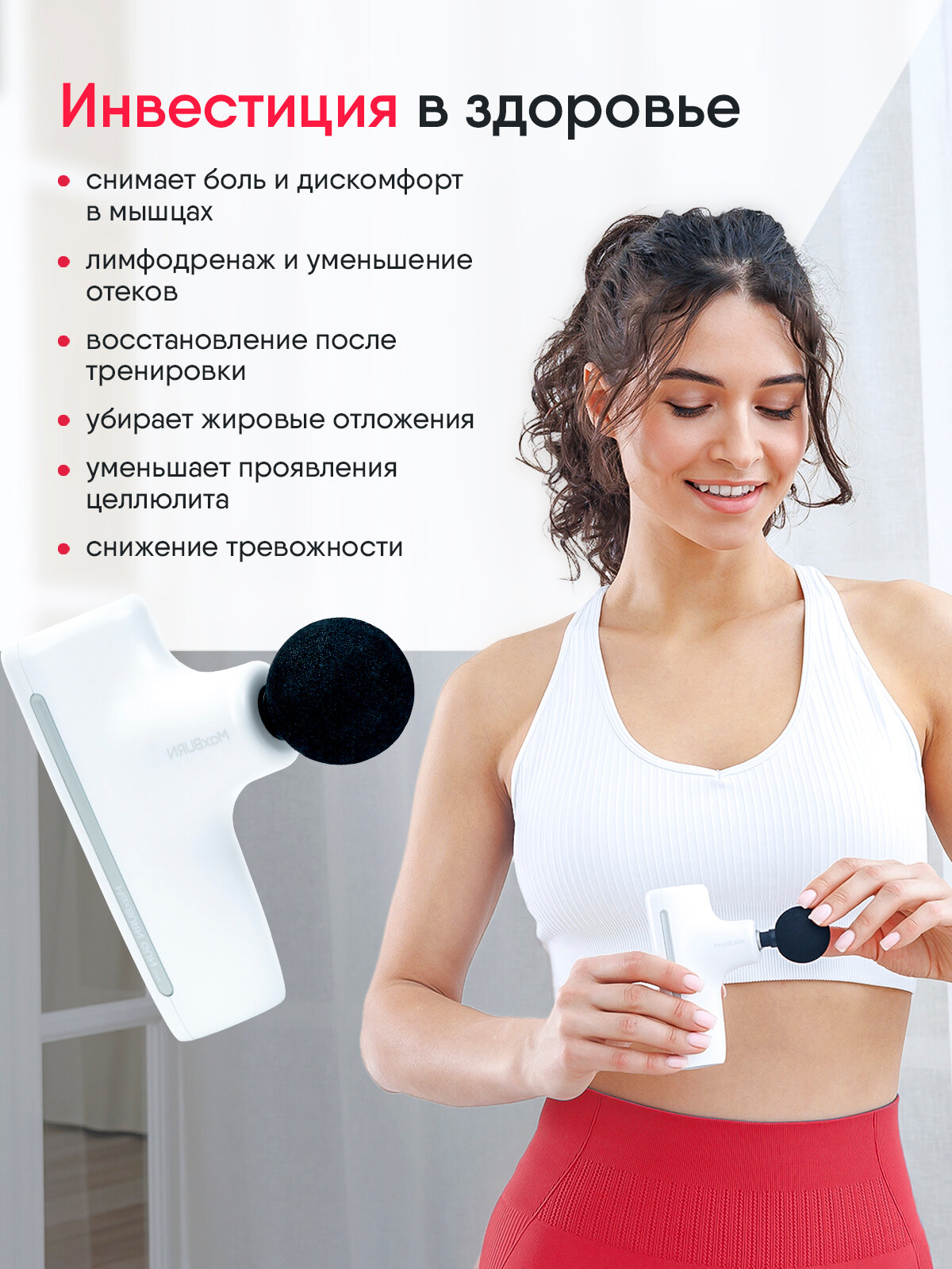- Идеален для тренировок. Возьмите массажер с собой и используйте его до и после тренировки: