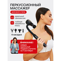 Перкуссионный массажер имеет удобную в захвате удлиненную ручку и эргономичный дизайн с изгибом на 120°, который идеально соответствует физиологическому изгибу позвоночника человека. Настройте свой массажер для тела электрический пистолет на 5 скоростей (1000-2600 об/мин). Меняйте местами 4 уникальные массажные головки пистолета для глубокого массажа тканей, воздействуя на различные части тела, мышцы и другие напряженные зоны для эффективного снятия усталости и боли. В отличие от обычных массажных пистолетов, наш вибромассажер для тела тканей с гибкими рукоятками позволяет легко расслабить спину / шею / плечи / талию / ноги / руки и другие труднодоступные участки без посторонней помощи. Это массажный инструмент для облегчения боли и ускоренного восстановления после спортивных травм. По сравнению с традиционным дизайном массажный пистолет оснащен мощным бесщеточным двигателем, срок службы которого составляет до 200 часов. В сочетании с технологией сверхшумного массажа он обеспечивает тихий расслабляющий массаж с частотой менее 45 децибел. Даже если вы разговариваете по телефону или смотрите программу, вас никто не потревожит. Массажер для спины электрический можно быстро зарядить за 90 минут с помощью кабеля USB Type-C или мобильного устройства. Массажер электрический Благодаря тонкой, удобной в захвате ручке и легкому дизайну вы сможете насладиться лучшим массажем дома, в тренажерном зале или в офисе. Этот электрический массажер премиум-класса станет идеальным подарком для профессиональных спортсменов, любителей фитнеса, пожилых людей, домохозяек и многих других.