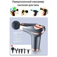 | Дополнительная информация | Массажный пистолет для вибрационной терапии глубоких мышц, имеет 6 насадки, работает от аккумулятора. |