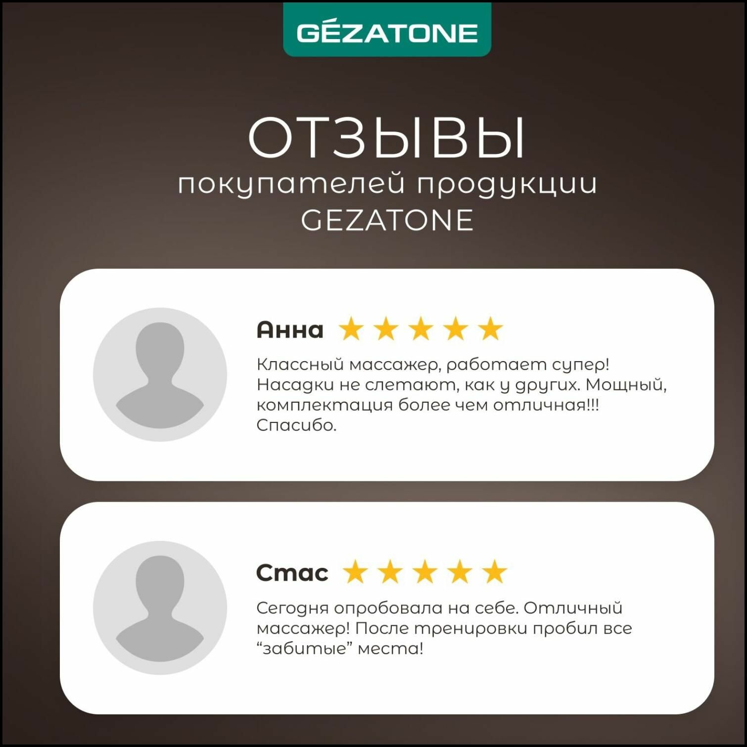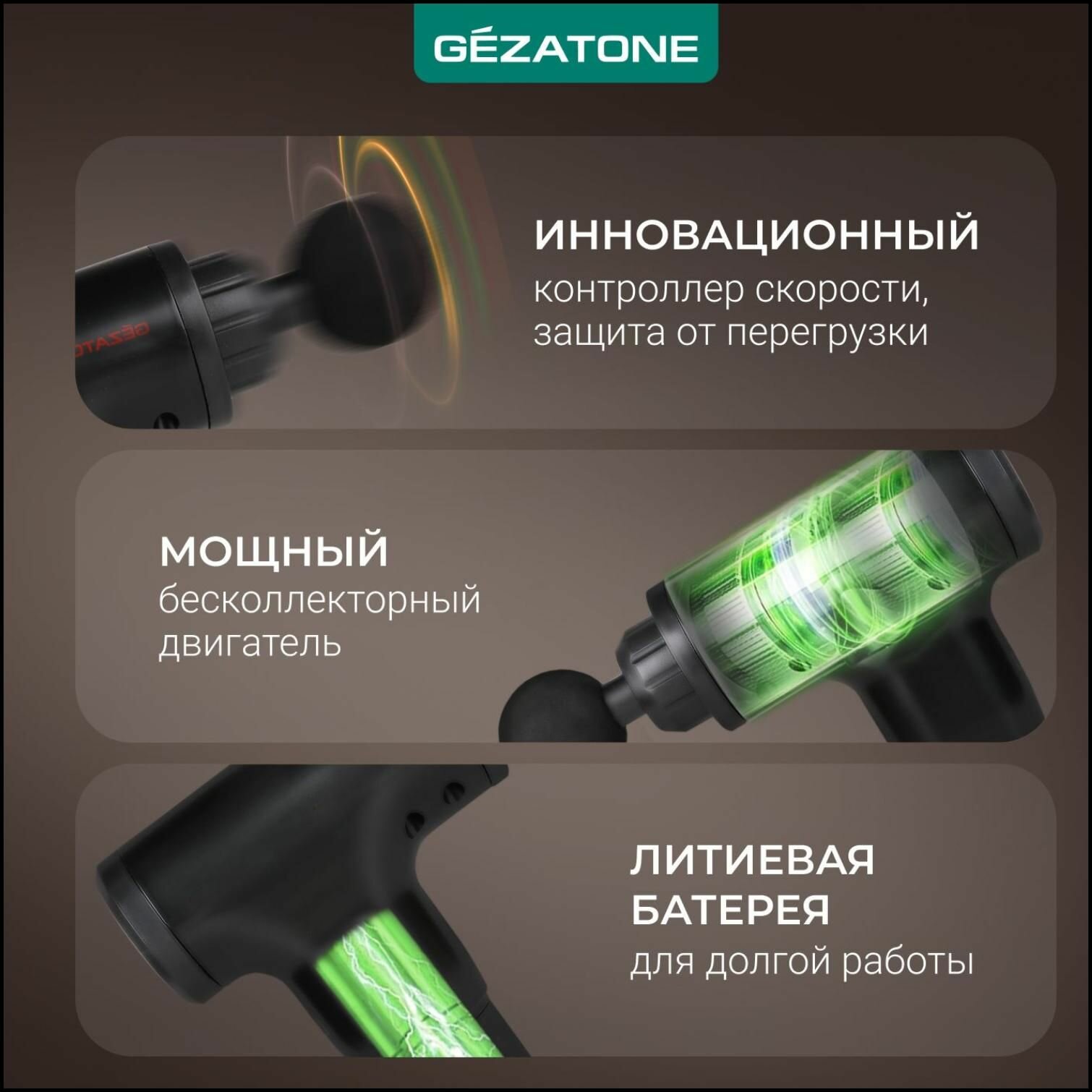 Перкуссионный массажер AMG140 Gezatone - 1 шт; сменные насадки – 4 шт; адаптер для зарядки – 1 шт; руководство по эксплуатации – 1 шт