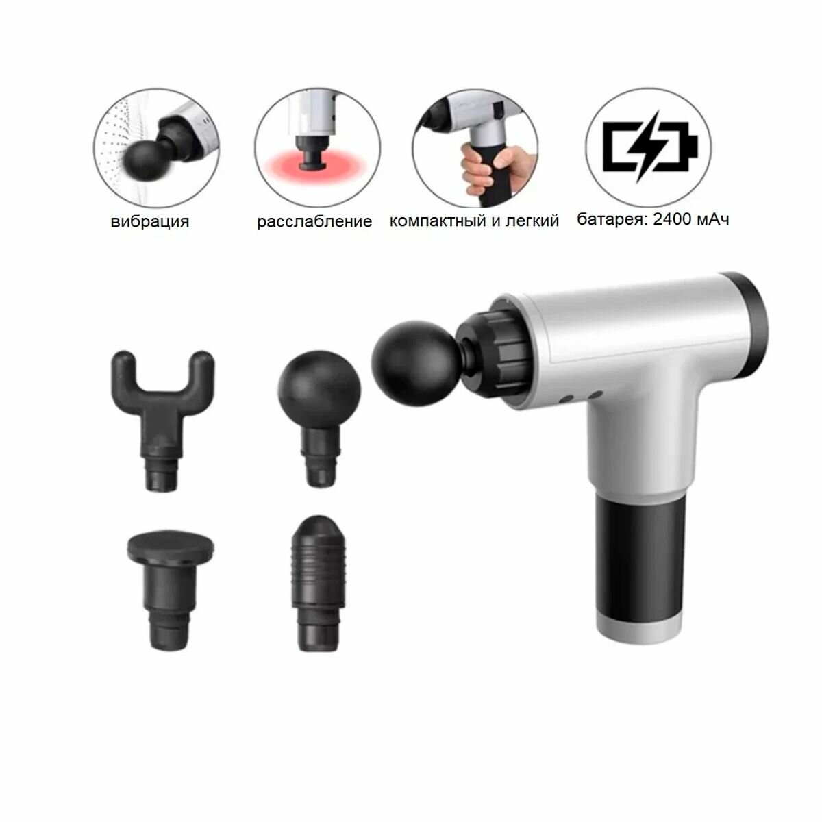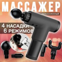 Перкуссионный массажер пистолет, цвет черный 120-34 / Ударный массажер для ног, шеи, спины, тела с 4 насадками: сравнение цен, характеристики, фото, актуальное наличие и цены.