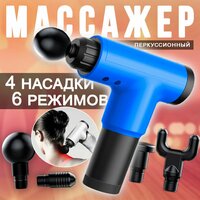 Перкуссионный массажер пистолет, цвет синий 120-34 / Ударный массажер для ног, шеи, спины, тела с 4 насадками: сравнение цен, характеристики, фото, актуальное наличие и цены.