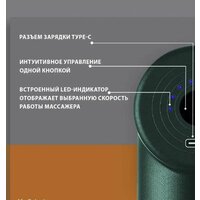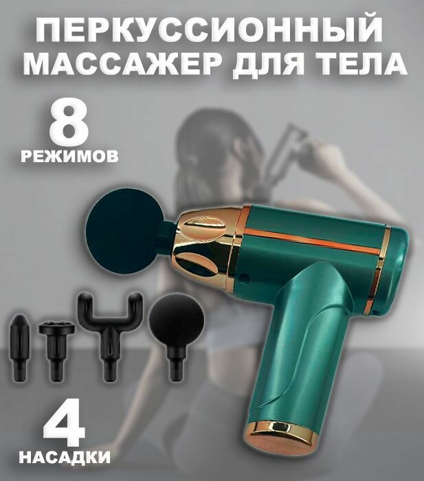 Перкуссионный массажер пистолет, цвет зеленый / Ударный массажер для ног, шеи, спины, тела с 4 насадками: сравнение цен, характеристики, фото, актуальное наличие и цены.